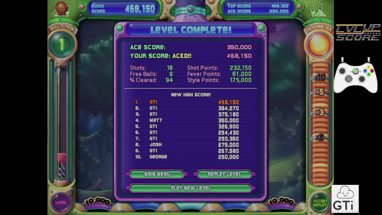 Game checked, level checked, gameplay checked, score checked, initials checked.
