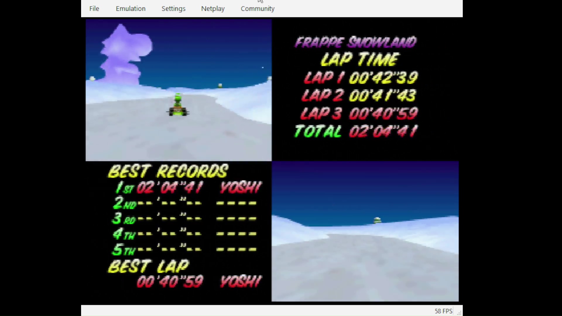 Emulation checked, game checked, Time Trial / Cup / Track checked, gameplay checked, time checked.