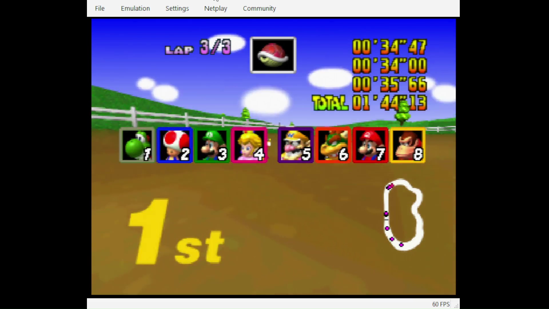 Played with an PAL game on a PAL N64 (HW or Emu) for PAL. Played with an NTSC game on a NTSC N64 (HW or Emu) for NTSC. INFO WHEN POSTING YOUR SCORES: If you play Time Trial you MUST post it in Time Trail Best Lap or Time Trail Total Time If you play a GP, you post on one of the CC boards. Your GP points go to Total Points Cup and you'll have to select the appropriate cup and CC as a track (which you can find all the way down the tracks pull down) |