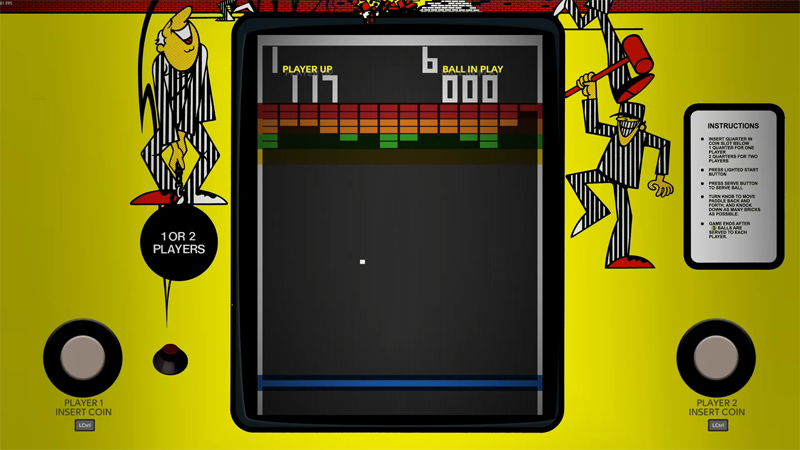00:30 Breakout arcade machine ready to play.