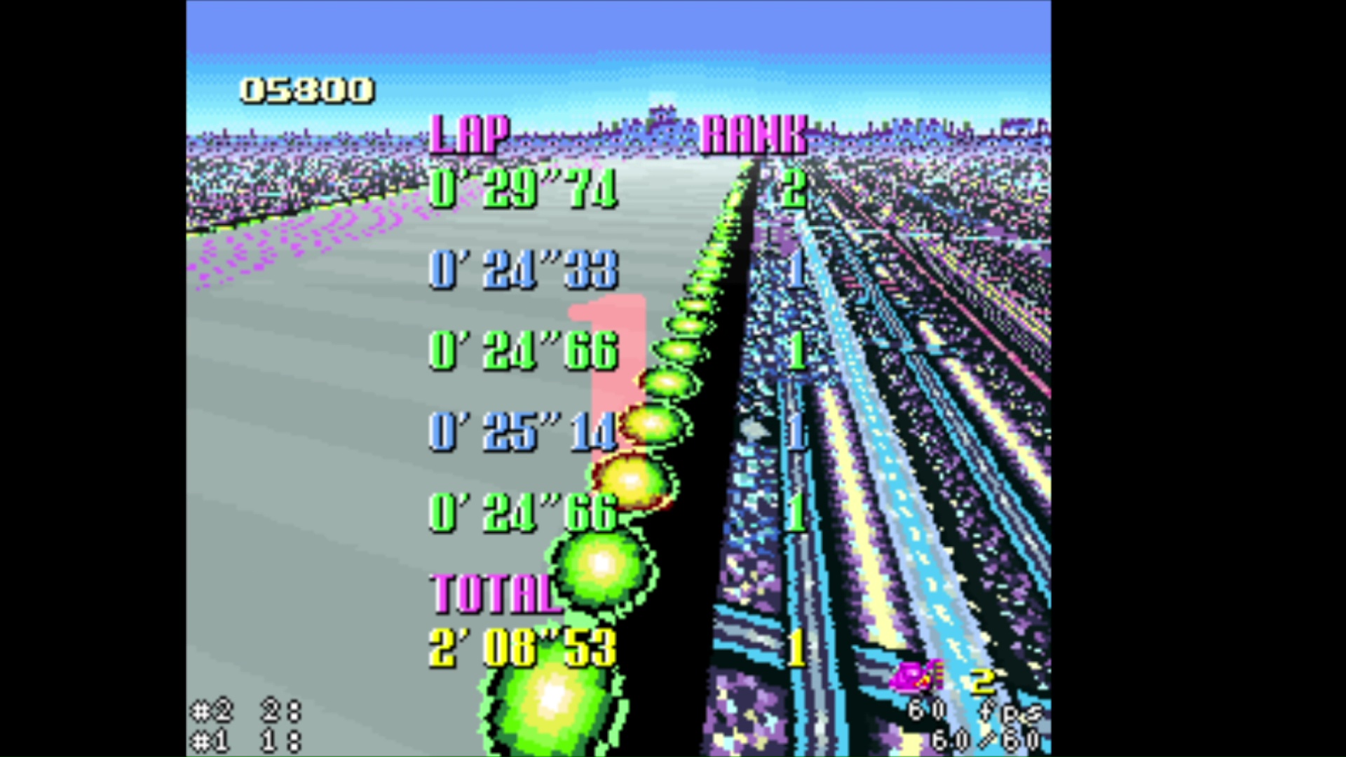 • zsnes (all versions) and snes9x emulators <=1.53 banned because inaccuracy in timing • super start allowed (pushed by other cars at start) • shortcuts allowed • practice mode: rival allowed • for best lap : use of 4 boosts on same lap allowed (1 just before the finish line on 4th lap and 3 others on last lap) • records menu is a mix of gp and practice time (pink = practice / blue = GP) • try again is allowed (3 lives = 3 retries maximum) • use of pause when the timer is started is forbidden • use of turbo button controller is forbidden |