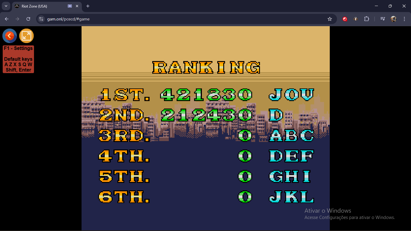 Emulation used from website: https://gam.onl/