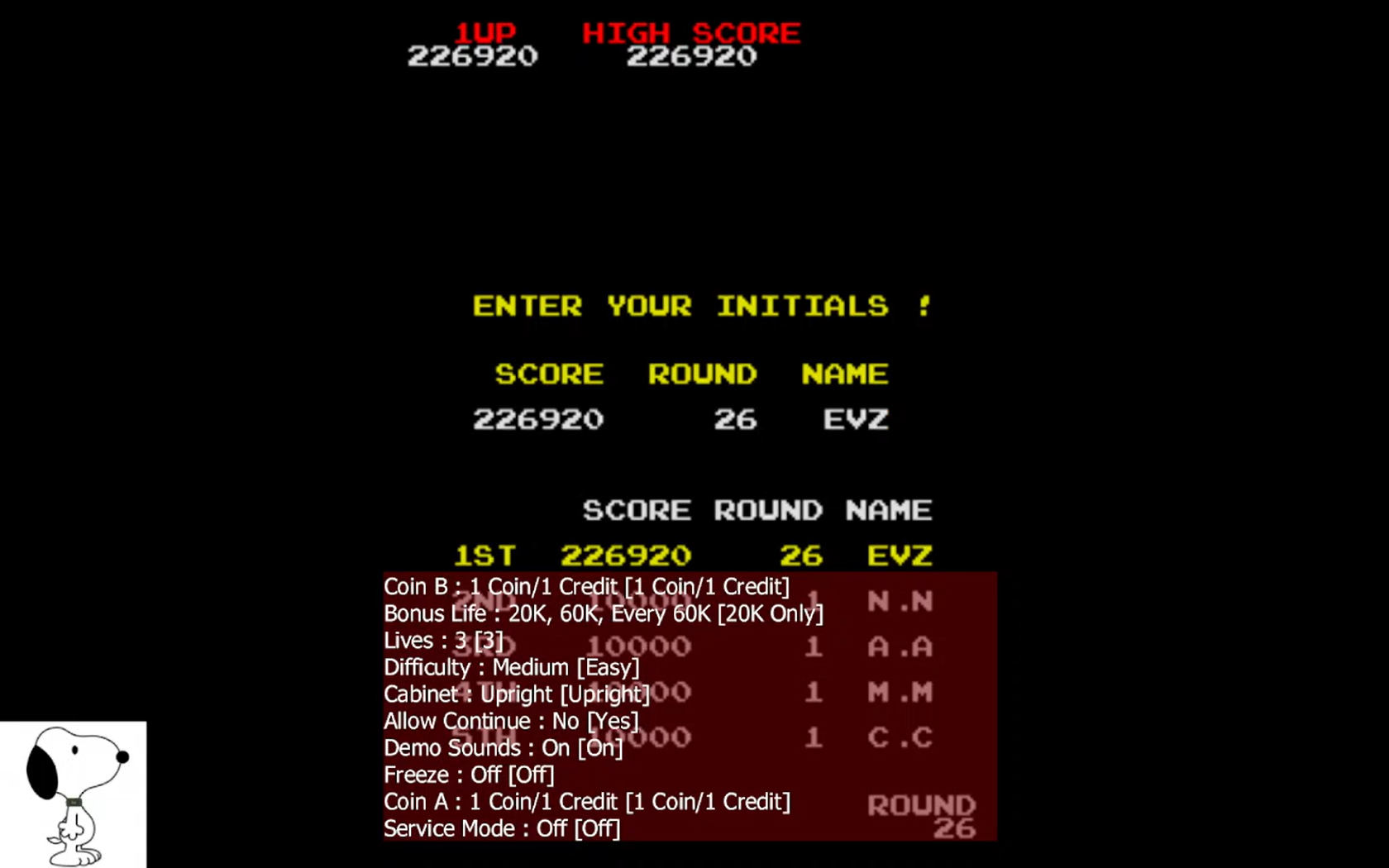 Play the game in 1 player mode with default settings. Settings for both Namco as Atari Rev 1 or 2 are: Bonus Life : 10K, 40K and every 40K Lives: 3 Difficulty: Medium roms you can use for this variation are: - digdug (rev2) - digdug1 (rev1) - digdugat (atari rev 2) - digdugat1 (atari rev 1) |