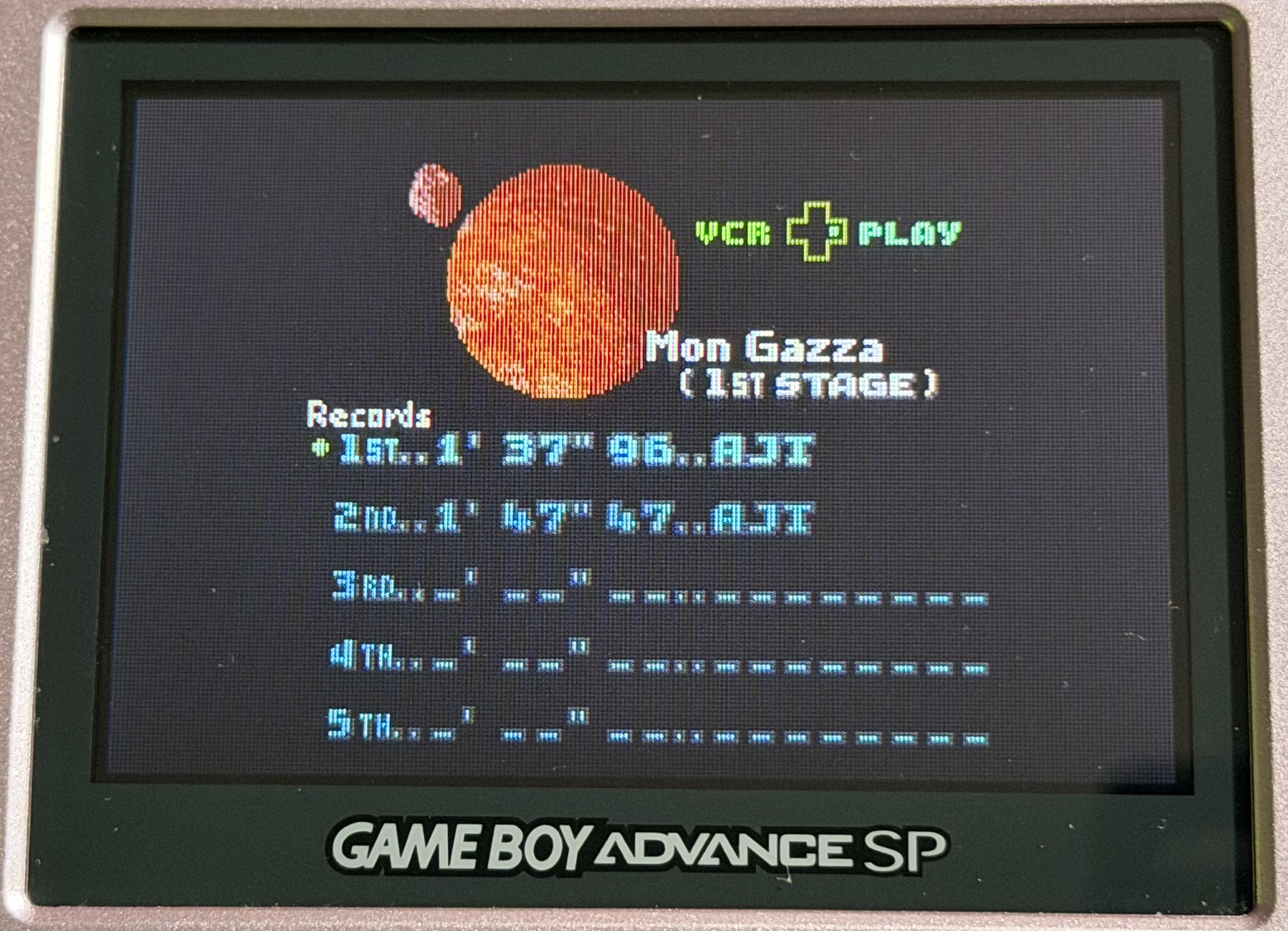 Hardware checked, game checked, planet and stage checked, gameplay checked, time checked, initials checked.