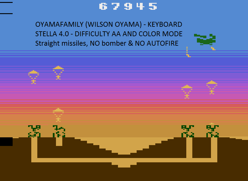 Left and right difficulty switch settings must remain in the A/Expert position throughout gameplay. No use of trainers, cheats, saved game files, auto-fire (when not default present in-game), emulator save states, or other emulator advantages. No use of code modifications that give the player an advantage over other players. No continues. It is discouraged and may lead to voters not accepting your score to: - excessively point farm - use glitches or other game exploits |
