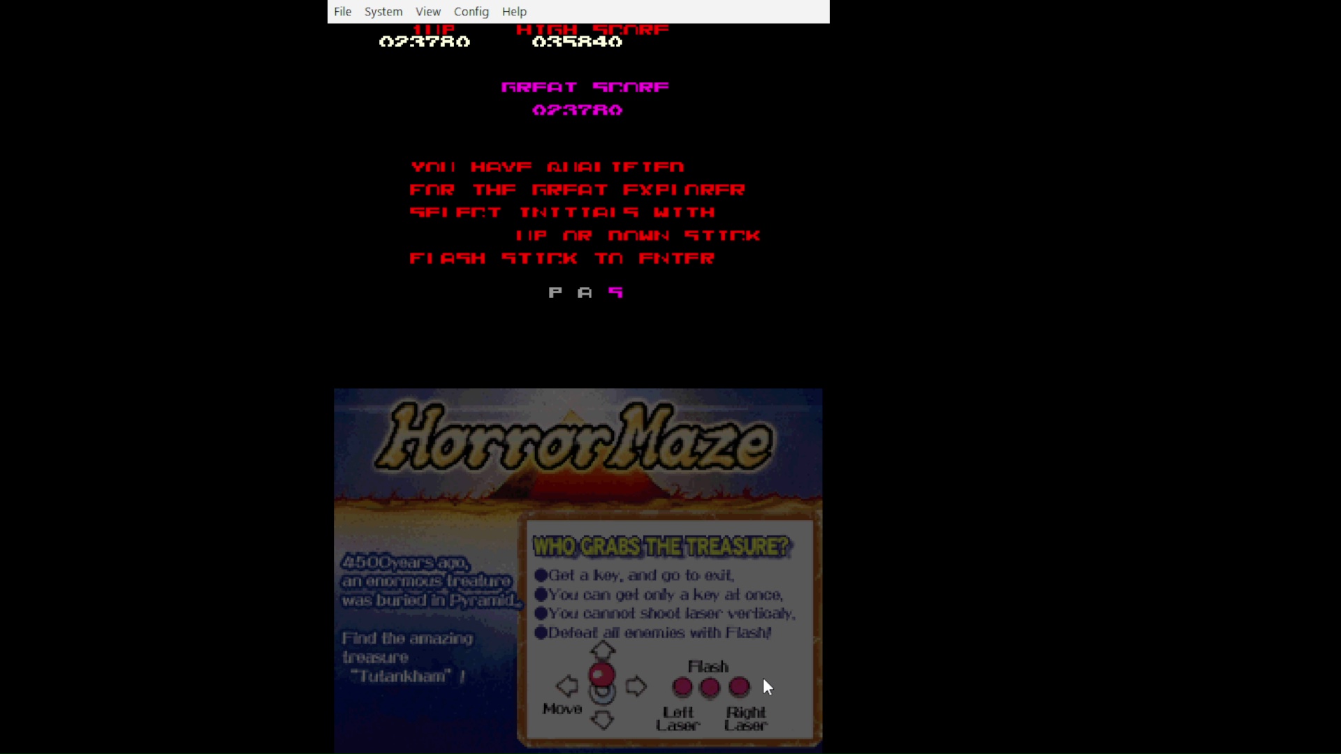 Emulation checked, game checked, gameplay checked, score checked, initials checked.