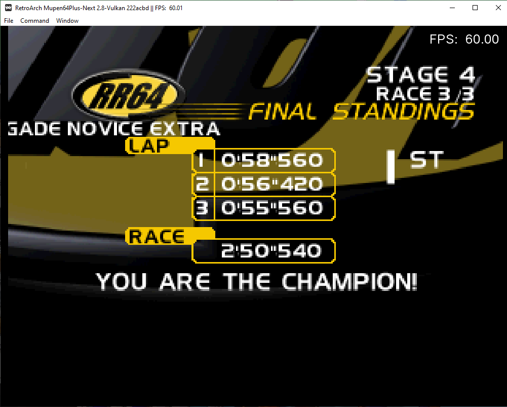 Finally took some free time to play to RR64. With the MupenCore, the game looks pretty nice and smooth, that's the reason i decided to try it.