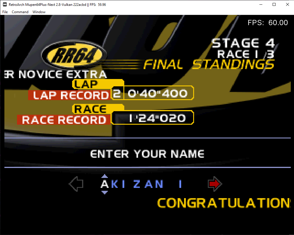 Finally took some free time to play to RR64. With the MupenCore, the game looks pretty nice and smooth, that's the reason i decided to try it.