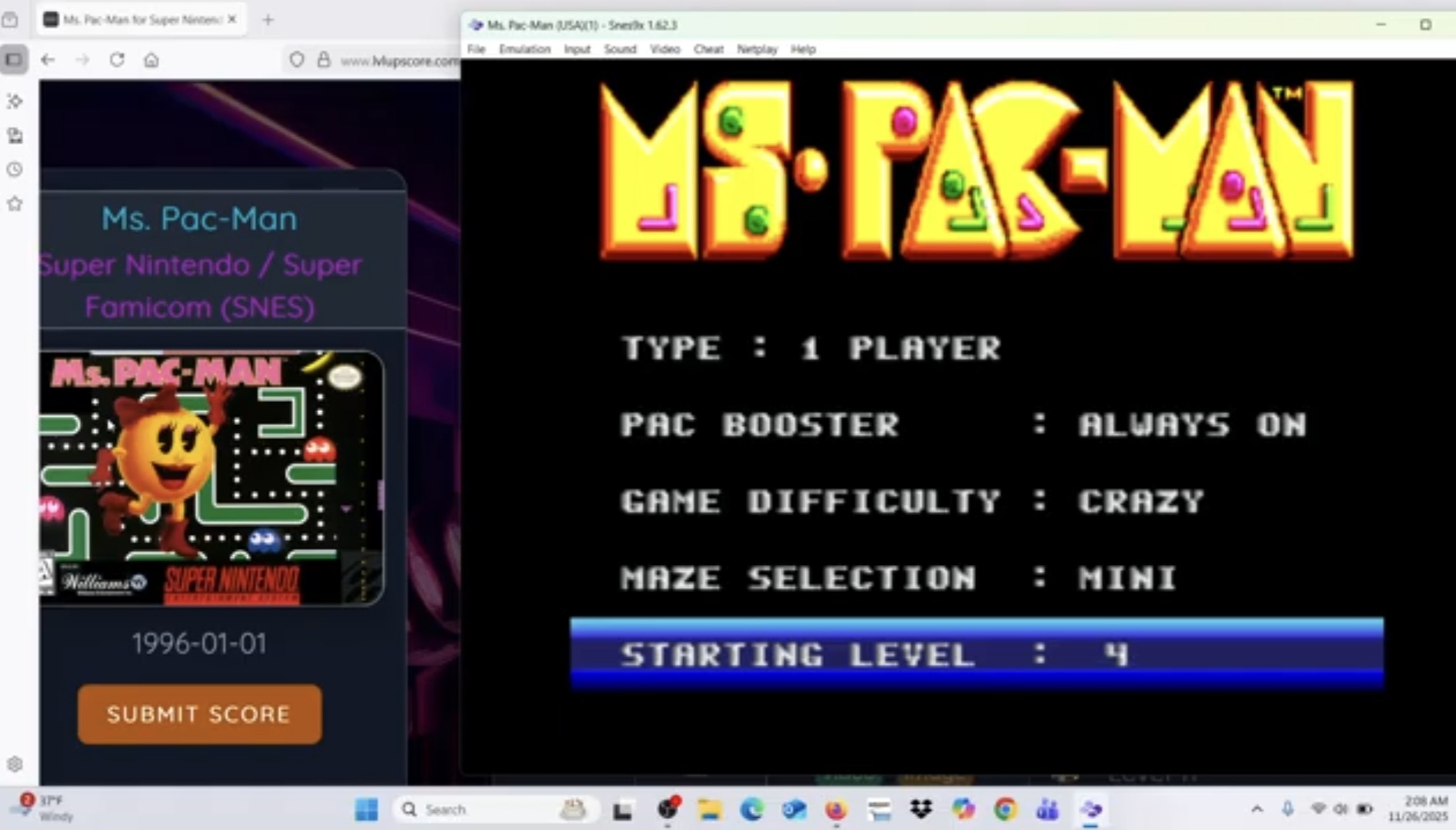 Play with default settings unless otherwise specified. No use of trainers, cheats, saved game files, auto-fire (when not default present in-game), emulator save states, or other emulator advantages. No use of code modifications that give the player an advantage over other players. 1 player only. No continues. It is discouraged and may lead to voters not accepting your score to: - excessively point farm - use glitches or other game exploits NTSC ROM and NTSC emulation recommended. Super Nintendo scores recorded on SNES Mini, Wii, WiiU and Switch can also go here. When using an emulator not provided by Nintendo, it is recommended to show which emulator and version was used. It is also recommended to use an emulator with high accuracy, as some emulators their timings are off, which can lead to unfair advantages or disadvantages in certain games. If the community finds a certain emulator to be a problem, we can decide to move or remove scores after acceptance. |