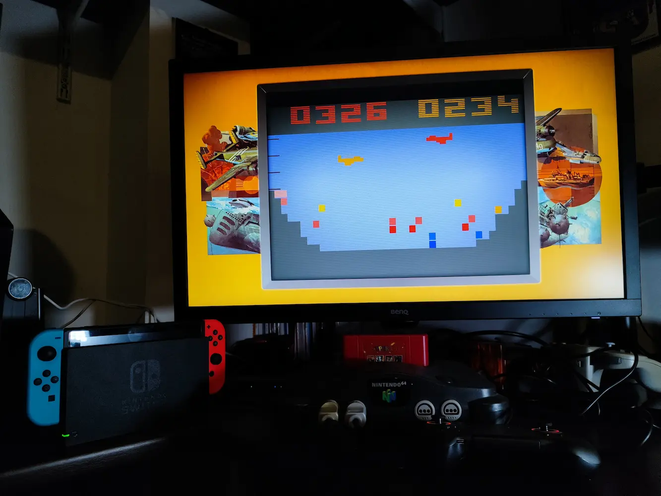 Hardware checked (photo only), game checked, Canyon Bomber Game 3 selected, gameplay checked, score checked.