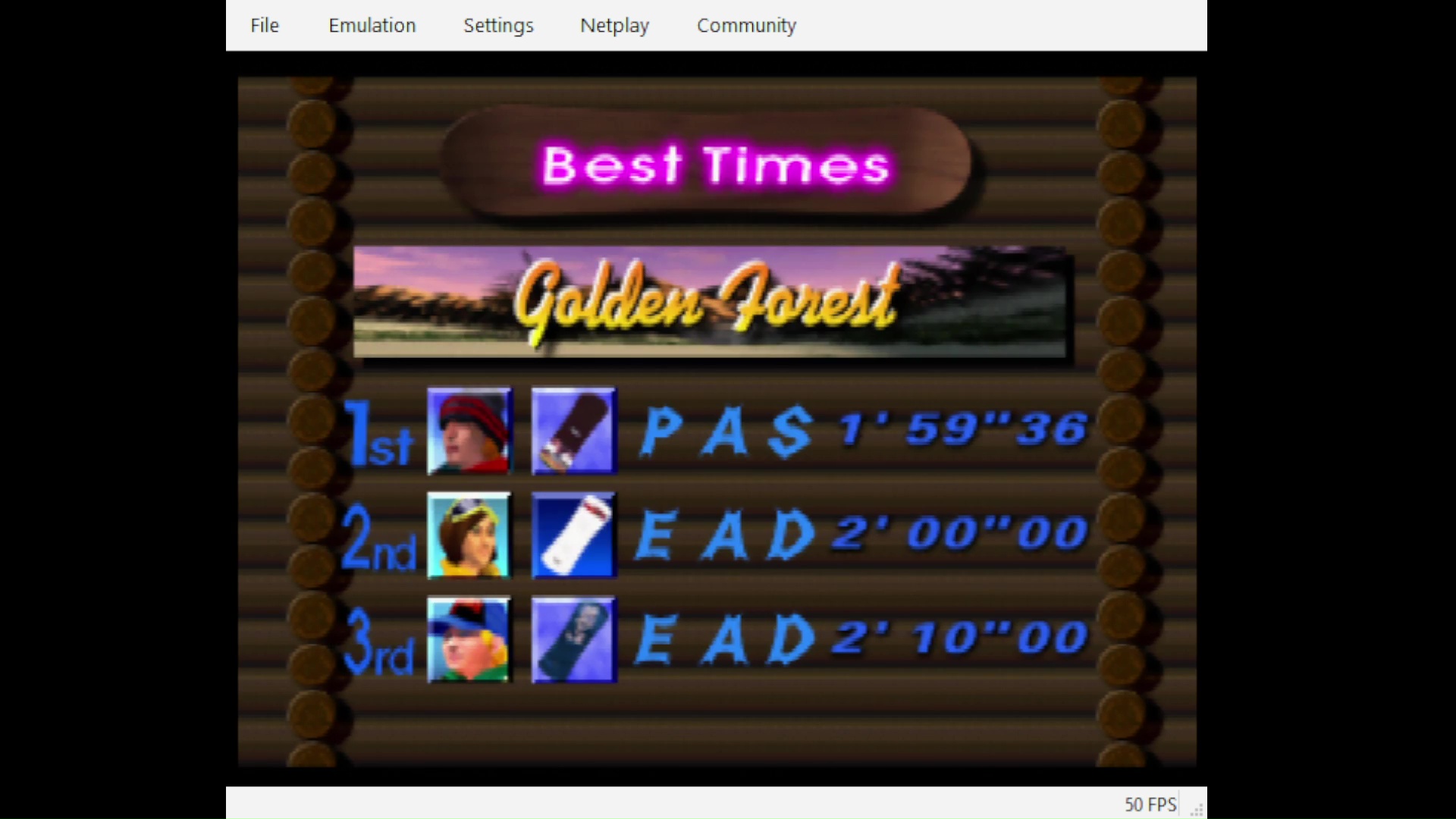 Emulation checked, game checked, Time Attack / Golden Forest checked, gameplay checked, time checked, initials checked.