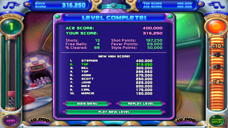 02:30 Last target peg hit. 50,000 point bonus scored. Final score 316,250 points.
