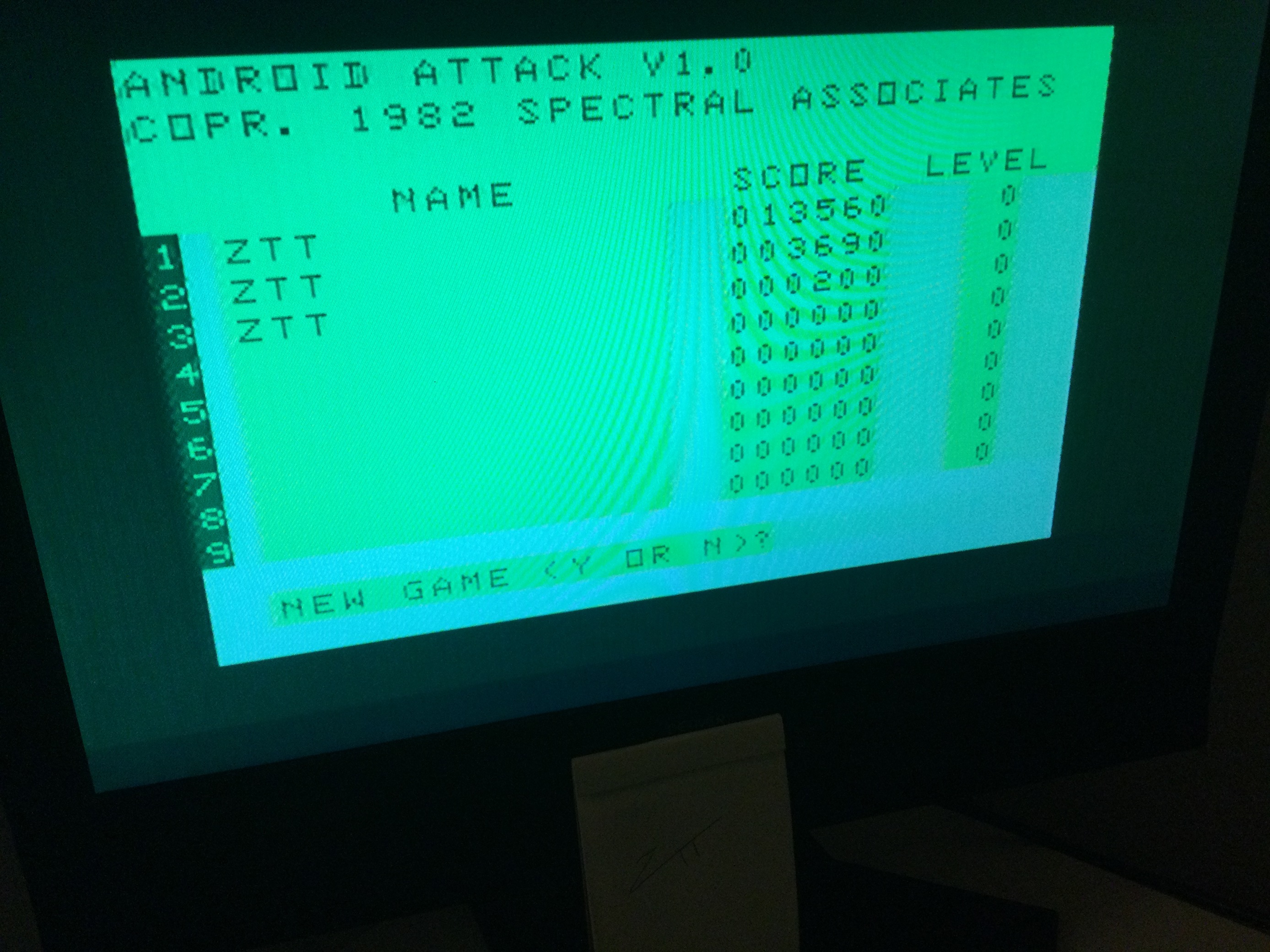 Game checked, initials checked, Skill 0 checked, gameplay checked, score checked, hardware checked (photo only).