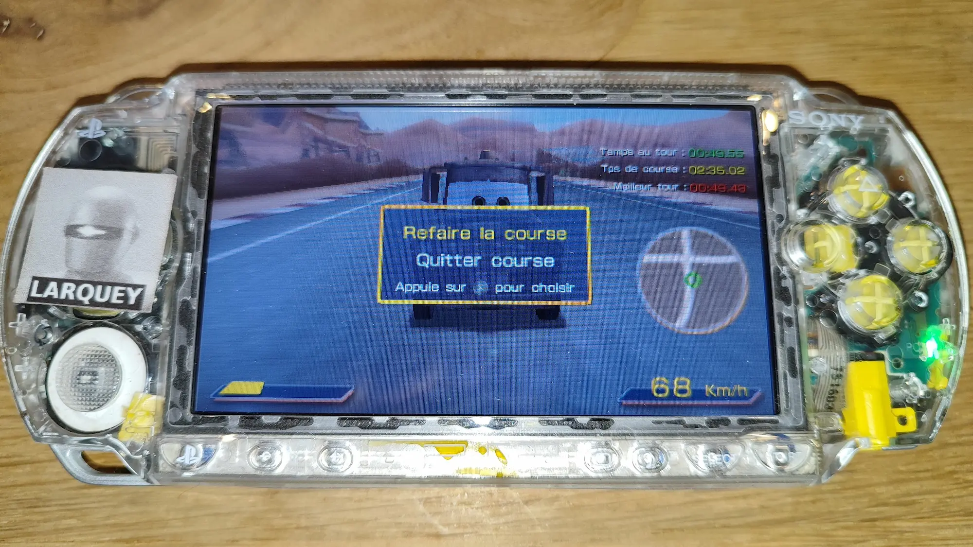 Play the game in 1 player mode with default settings. Play Time Trial or other. Go to Options/Game/Postcards;records/Track Records to show times. |