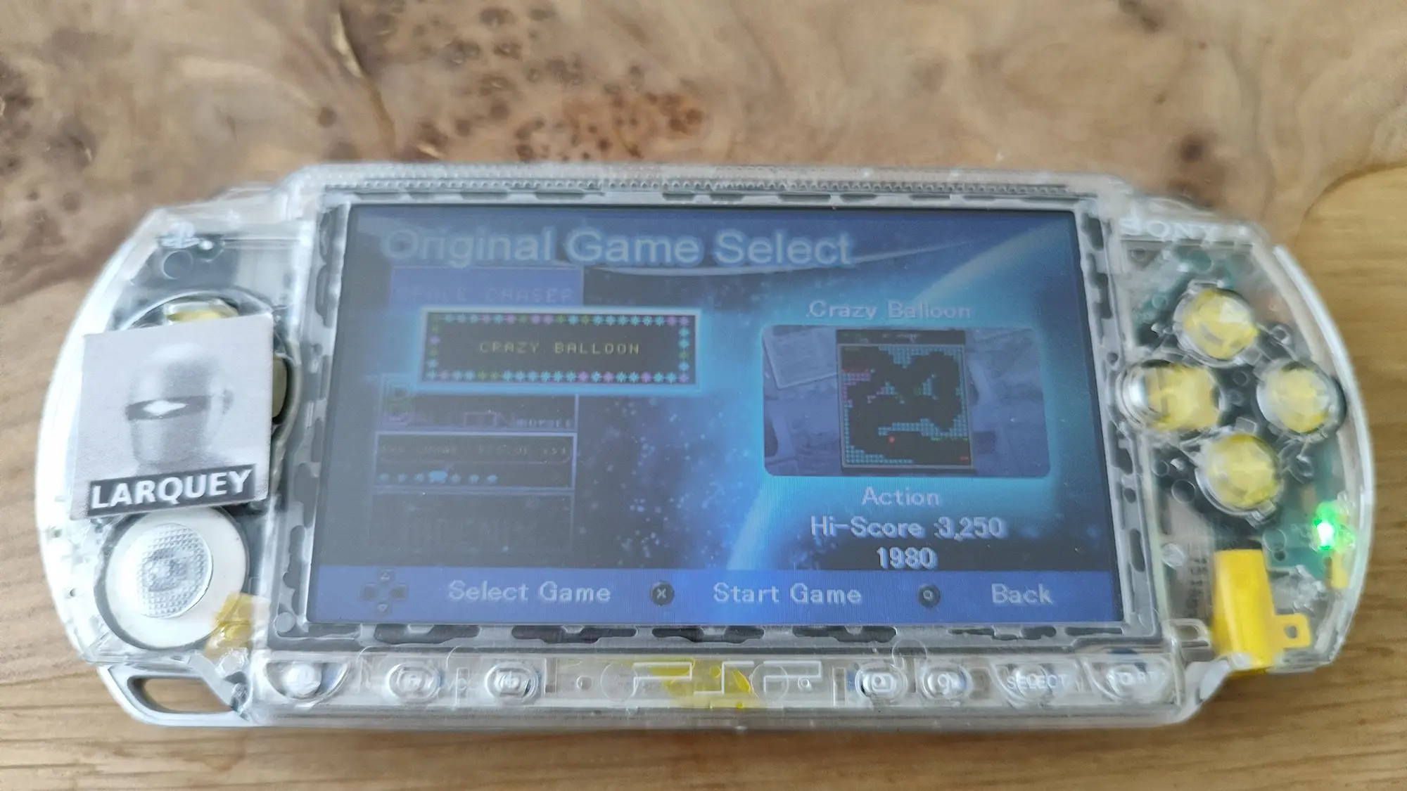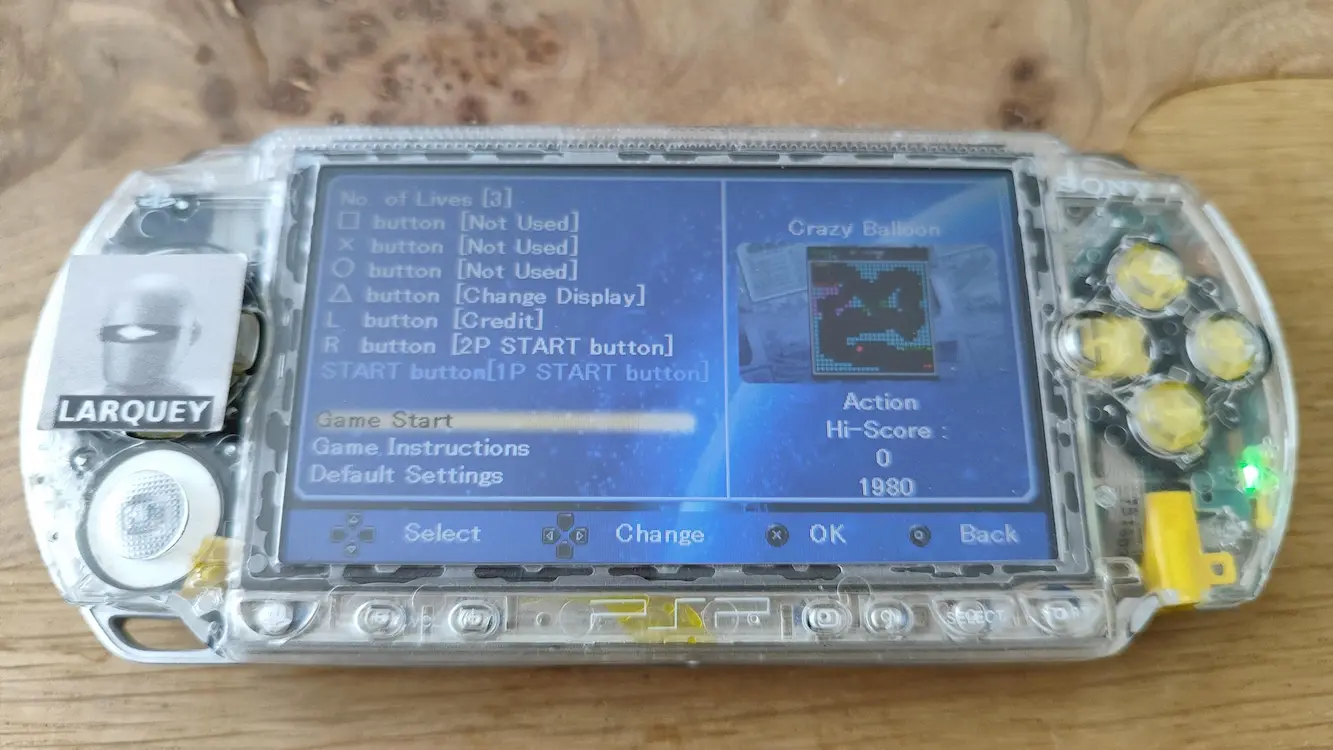 Hardware checked, game checked, Crazy Balloon checked, score checked, initials checked.