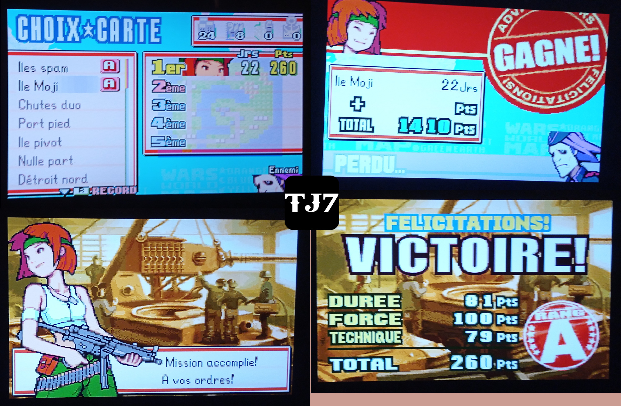 Île Moji: 265pts, 22jours, Samy. Played with an arcade stick. Doesn't change much but sometimes I slip on the wrong tile and lose a turn.