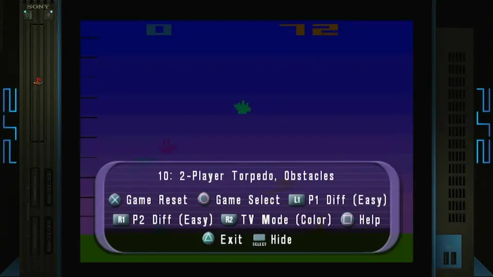 Play the game in 1 player mode with default settings : On "Game Select", choose "10 : 2-Player Torpedo, Obstacles", but play with one player only ! |