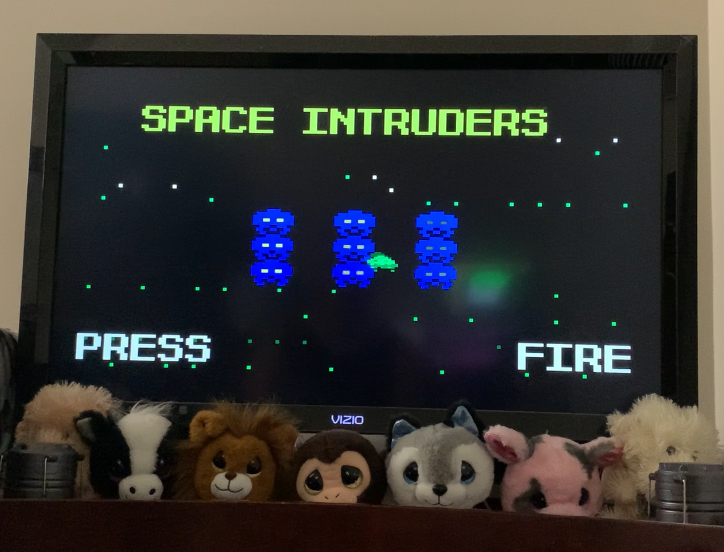 System reset (menu screen showed Space Intruders as the current game).