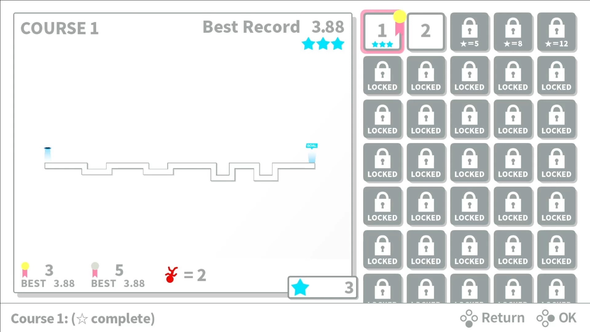 Specific Rules: Play the game in 1 player mode with default settings