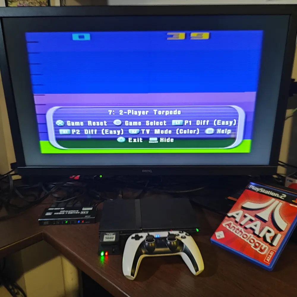 Play the game in 1 player mode with default settings : On "Game Select", choose "7 : 2-Player Torpedo", but play with one player only ! |