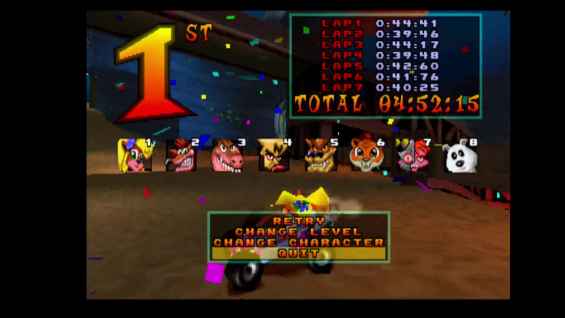 Play the game in 1 player mode with default settings Character choice is free |