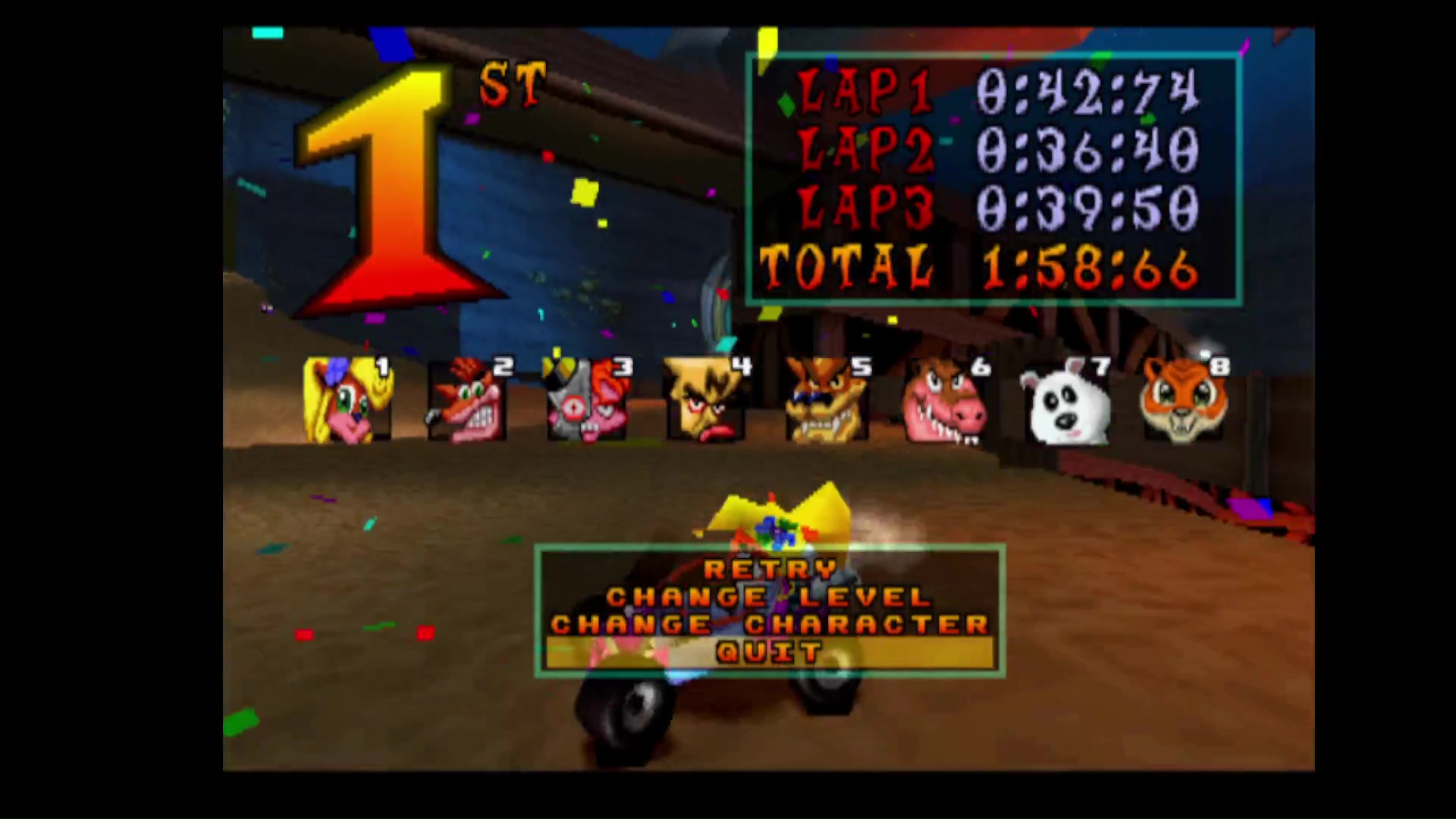 Play the game in 1 player mode with default settings Character choice is free |