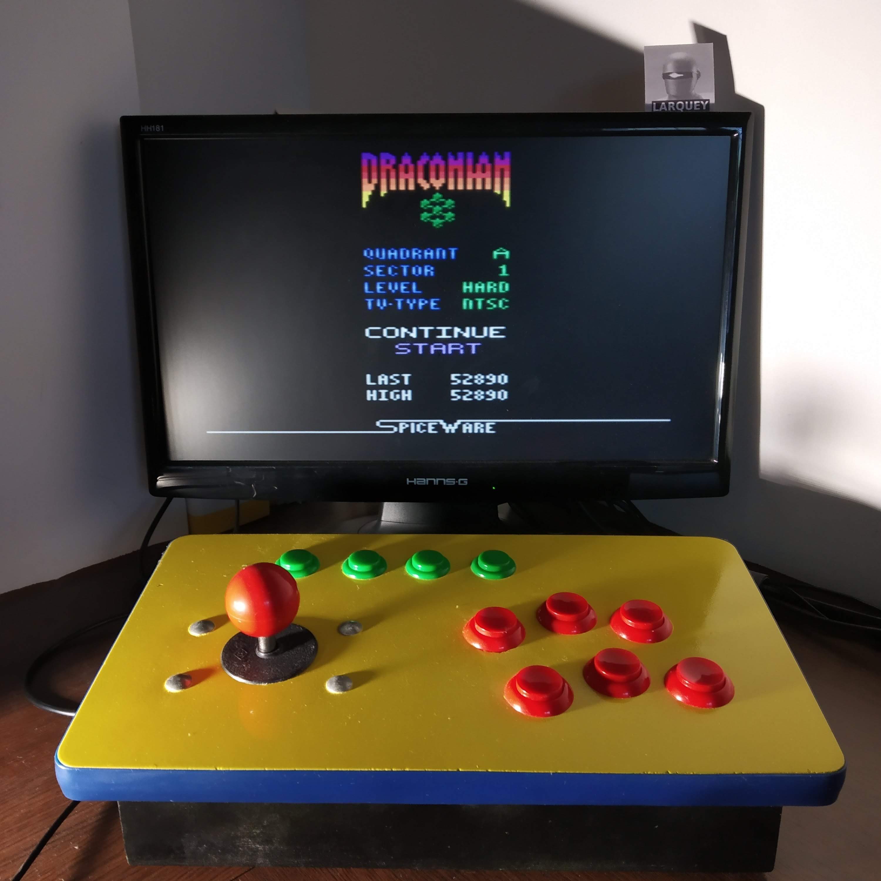 Game select switch takes you to the intro screen. Select options from intro screen: ∙ Quadrant: Alpha (A) ∙ Sector: Starting on Sector 1 ∙ Difficulty Level: Hard Difficulty switch settings have no effect in this title, and can therefore be in any position at any time. Homebrew Author: Daryl Spice / Spiceware Released: 2019 ROM was publicly released by its author, and can be obtained here: 🎁https://atariage.com/forums/blogs/entry/16044-draconian-final-rom/ 2.14.22 |