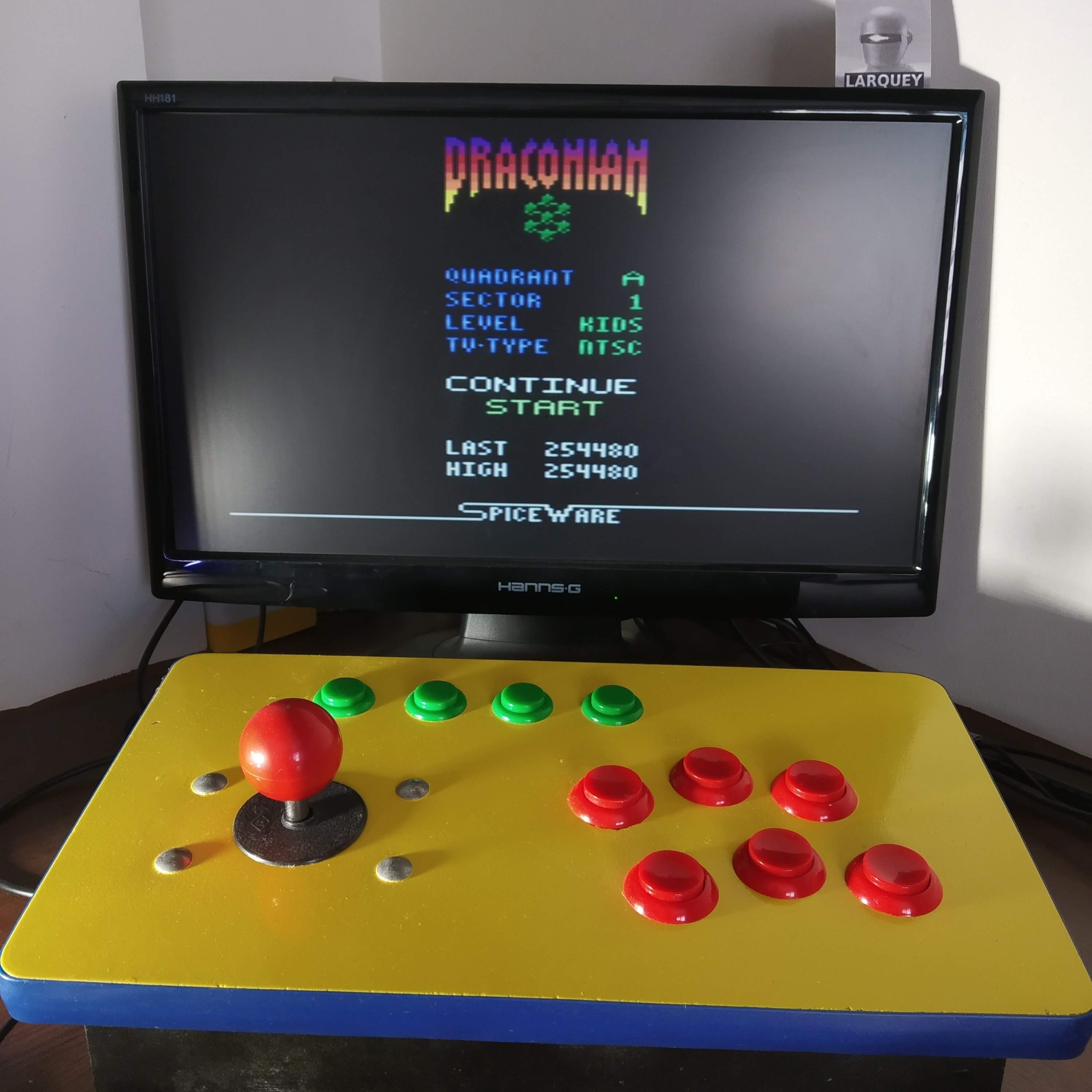 Game select switch takes you to the intro screen. Select options from intro screen: ∙ Quadrant: Alpha (A) ∙ Sector: Starting on Sector 1 ∙ Difficulty Level: Kids Difficulty switch settings have no effect in this title, and can therefore be in any position at any time. Homebrew Author: Daryl Spice / Spiceware Released: 2019 ROM was publicly released by its author, and can be obtained here: 🎁https://atariage.com/forums/blogs/entry/16044-draconian-final-rom/ 2.14.22 |