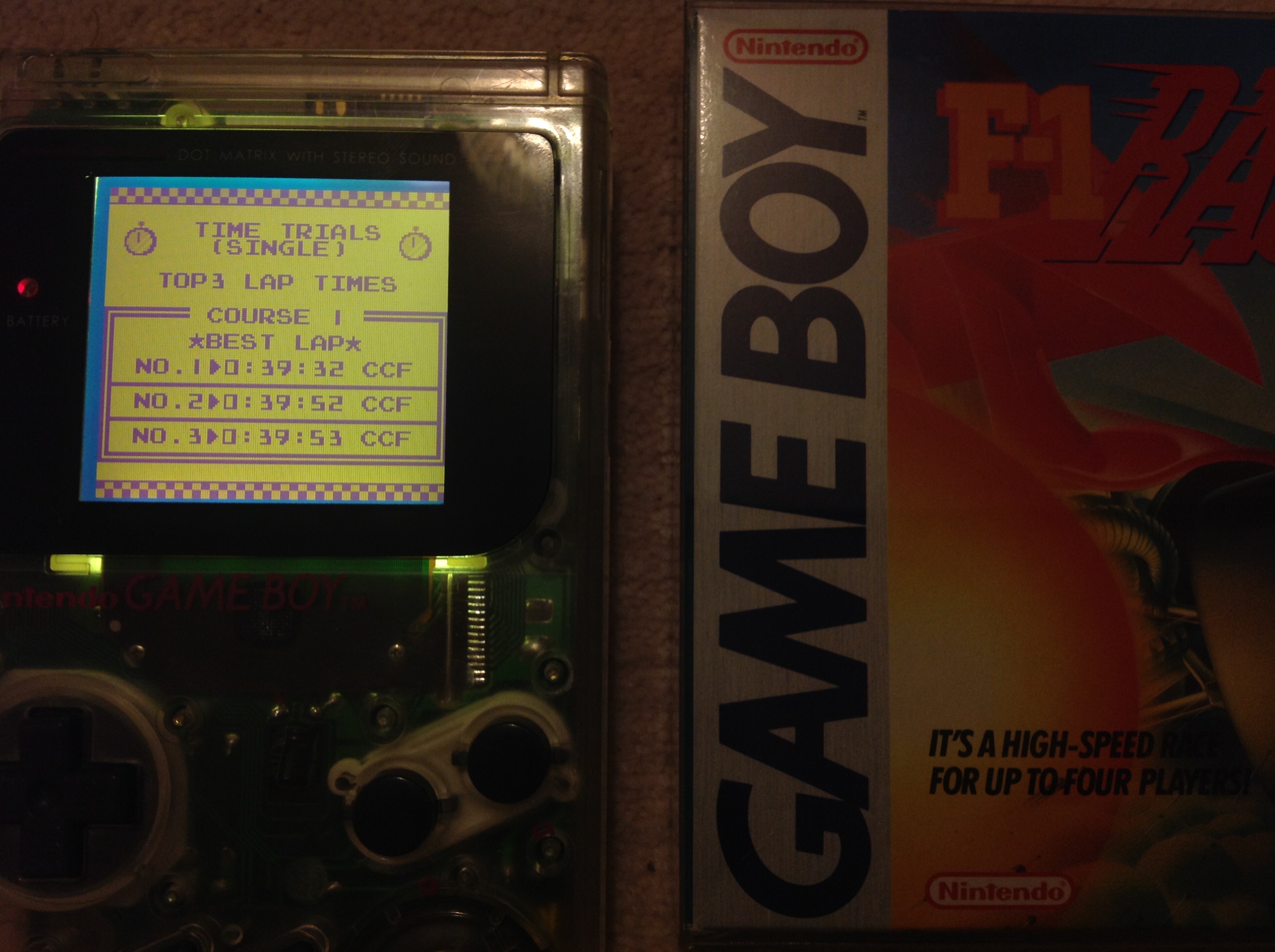 Play the game in 1 player mode with specific settings : -> Must be Play in Time Trials, Single mode (Alone on race, no other cars). -> Machine Select : Type A or Type B (Player can choose any car) * EMULATION RECOMMANDATIONS * - Internal clock of following emulators : VBA/VBA-M, SameBoy, RetroArch) is not accurate and for this reason, they are banned on lvlupscore.com -> More informations if needed : http://www.gbrunners.com/game-boy-speedrunning-explained For Top 3, we encourage (and not impose) to provide: - Emulator used (name and version). - Real time FPS (Gameboy FPS is around 59 or 60 fps), because of a leaderboard based on an in-game timer, - A video evidence because of all previously reasons. *ORIGINAL HARDWARE* No specific for now... feel free to contact game-admin if you need. * INFORMATIONS * - This game has an GamePak' battery-backed internal memory. (for saving the records) |