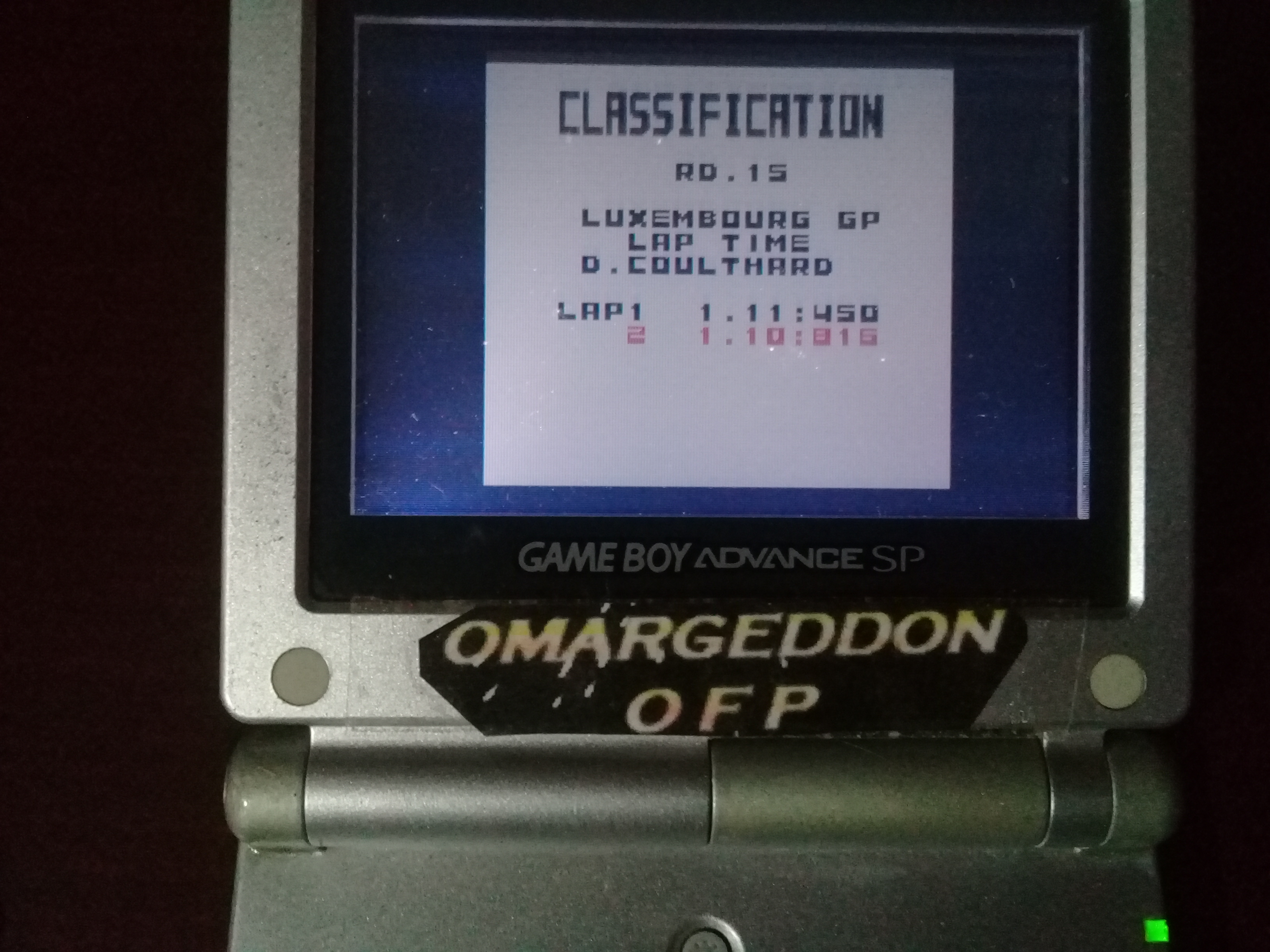 Play the game in 1 player mode with default settings Choose Skill = Rookie Choice of Team and Driver is free choice. Weather, Transmission and car settings are also free choice. ** EXTRA INFORMATIONS ** Options menu is only for Language / Sound / Music / Speed OMeter and Records. |