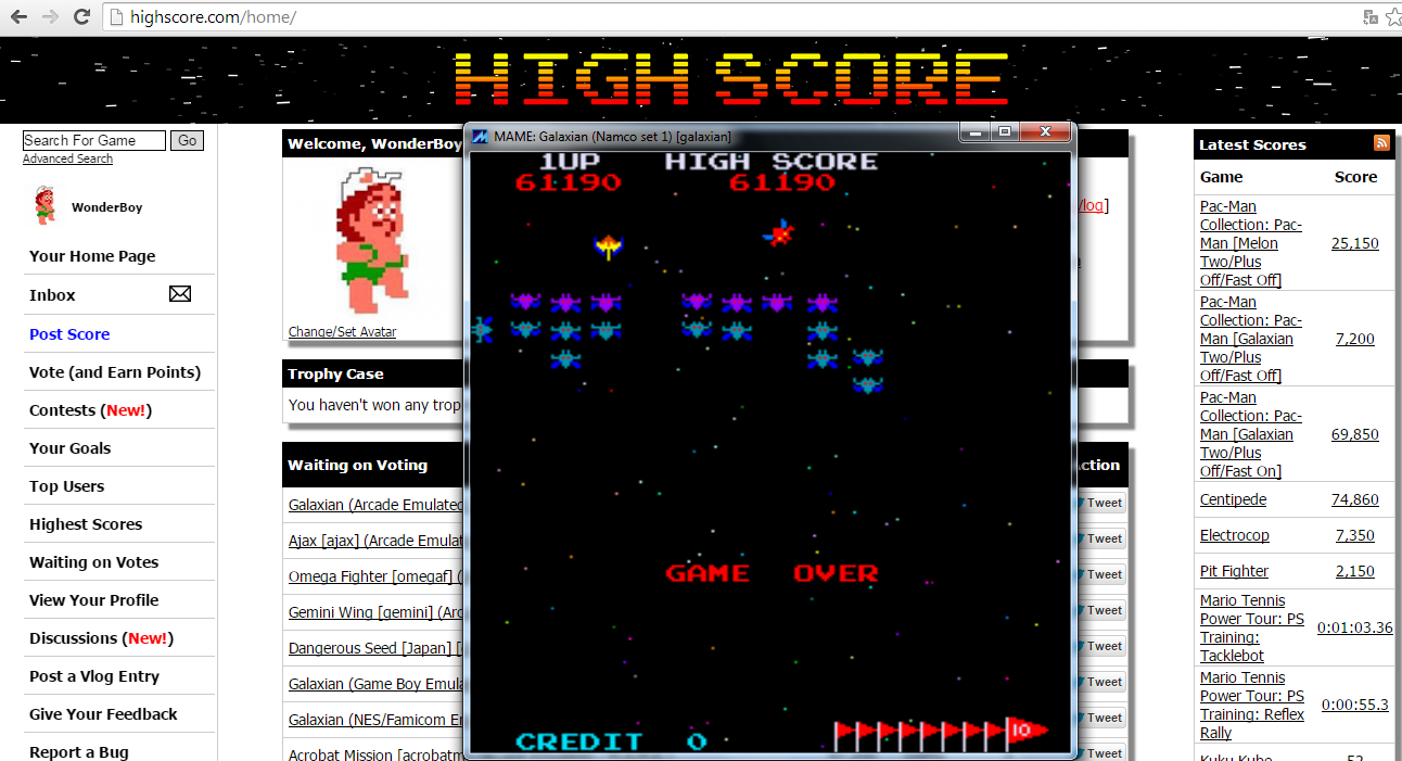Play with default settings unless otherwise specified. If the ROM set is not mentioned, play the parent ROM. No use of trainers, cheats, saved game files, emulator save states or other emulator advantages. No use of code modifications that give the player an advantage over other players. 1 player only. No continues. In-game/internal autofire is only allowed if a game has it (enabled through hard or soft DIPs). External/MAME/cheat-based autofire is not allowed. It is discouraged and may lead to voters not accepting your score to - excessively point farm - use glitches or other game exploits You can use any emulator you want (Retropie, rain, neo geo, Coinops, Antstream, handhelds,...). If specific emulators or versions are restricted, it will be mentioned in the Specific rules. For Top 3 we encourage (but NOT mandatory) to provide: a) A full video with DIP Switches to be shown in the video (at the start or at the end of your performance). If DIP Switches are not available, Service Menu should be used instead (at the start of your performance). If no difficulty settings is available on your game, you still have to show either DIP switches or service mode showing this (if not mentioned in the specific rules). OR b) An INP file. Please state your MAME version in the comments. And add an URL where the voter can download your .inp. (We currently have no way to store those files on the server, but it is on the roadmap). For INPs: o We encourage to also show the DIPs during your video play. o Delete NVRAM before recording/viewing. Many arcade games that MAME emulates save some information (like high scores) in non-volatile ram (NVRAM), which by default MAME saves in the nvram subfolder. For some games (not all) the RNG is affected by NVRAM, so an .inp file recorded with non-empty nvram won't replay correctly on anyone else's system. o To record INP file, you require Wolfmame: You can download it here : https://github.com/mahlemiut/wolfmame/releases (or on MARP). o Record one run gameplay when using INP. |
