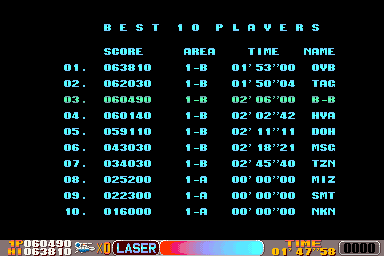 Play with default settings unless otherwise specified. If the ROM set is not mentioned, play the parent ROM. No use of trainers, cheats, saved game files, emulator save states or other emulator advantages. No use of code modifications that give the player an advantage over other players. 1 player only. No continues. In-game/internal autofire is only allowed if a game has it (enabled through hard or soft DIPs). External/MAME/cheat-based autofire is not allowed. It is discouraged and may lead to voters not accepting your score to - excessively point farm - use glitches or other game exploits You can use any emulator you want (Retropie, rain, neo geo, Coinops, Antstream, handhelds,...). If specific emulators or versions are restricted, it will be mentioned in the Specific rules. For Top 3 we encourage (but NOT mandatory) to provide: a) A full video with DIP Switches to be shown in the video (at the start or at the end of your performance). If DIP Switches are not available, Service Menu should be used instead (at the start of your performance). If no difficulty settings is available on your game, you still have to show either DIP switches or service mode showing this (if not mentioned in the specific rules). OR b) An INP file. Please state your MAME version in the comments. And add an URL where the voter can download your .inp. (We currently have no way to store those files on the server, but it is on the roadmap). For INPs: o We encourage to also show the DIPs during your video play. o Delete NVRAM before recording/viewing. Many arcade games that MAME emulates save some information (like high scores) in non-volatile ram (NVRAM), which by default MAME saves in the nvram subfolder. For some games (not all) the RNG is affected by NVRAM, so an .inp file recorded with non-empty nvram won't replay correctly on anyone else's system. o To record INP file, you require Wolfmame: You can download it here : https://github.com/mahlemiut/wolfmame/releases (or on MARP). o Record one run gameplay when using INP. |