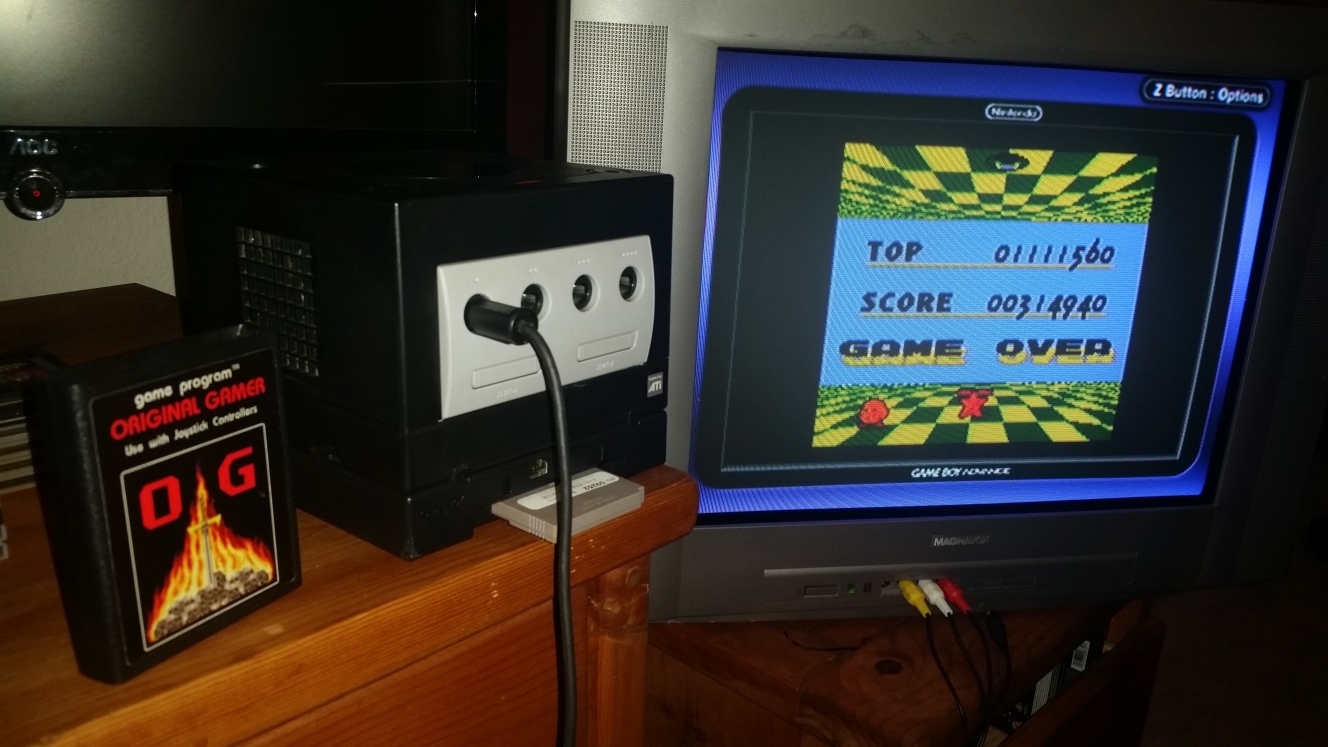 Play the game in 1 player mode with default settings : 2 lives @ start. This game has an GamePak' battery-backed internal memory. When you save your game, your score and position of the ball is saved. In conclusion, this is like a savestate and it's not allowed in this default variation. |