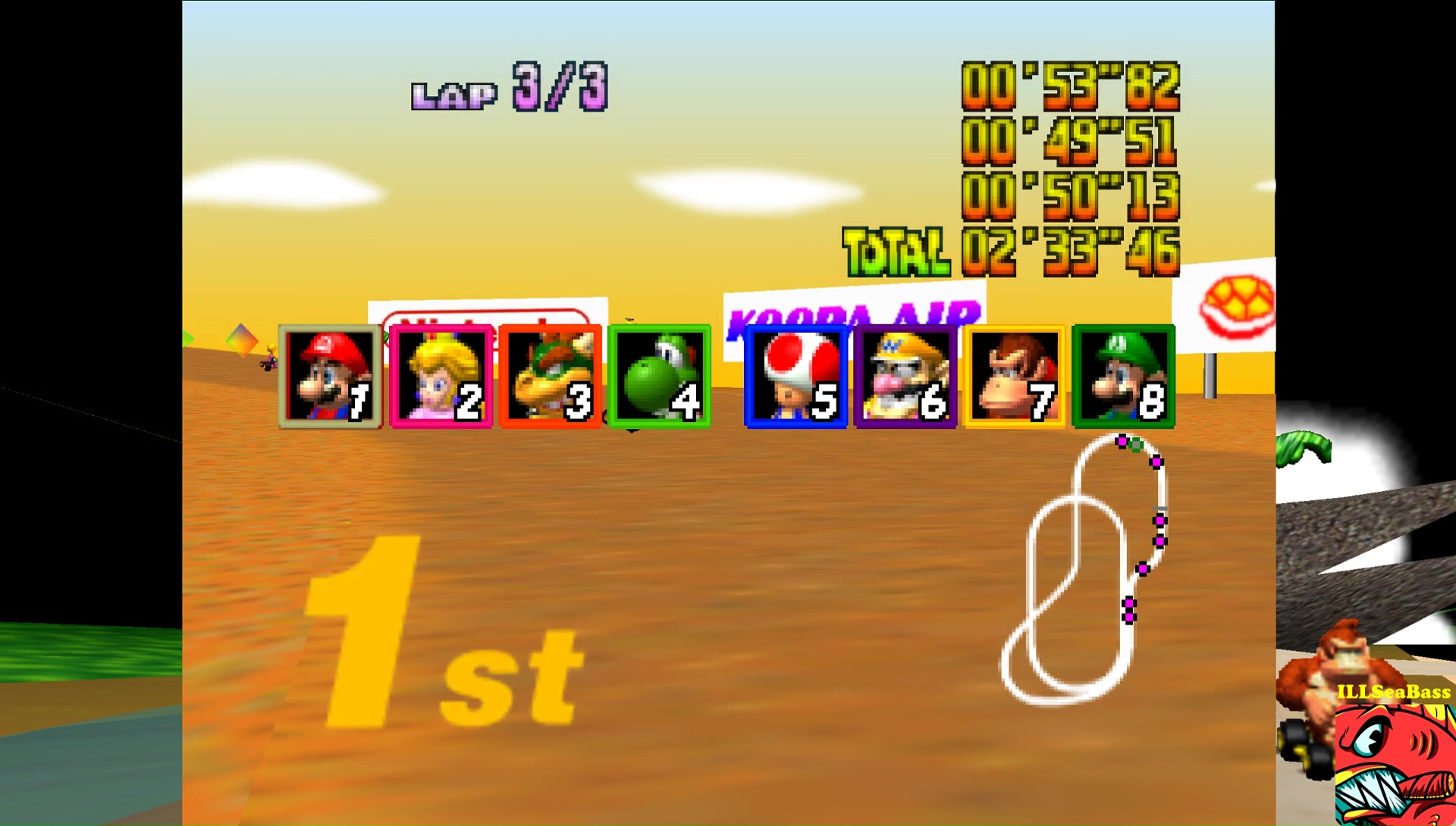Played with an PAL game on a PAL N64 (HW or Emu) for PAL. Played with an NTSC game on a NTSC N64 (HW or Emu) for NTSC. INFO WHEN POSTING YOUR SCORES: If you play Time Trial you MUST post it in Time Trail Best Lap or Time Trail Total Time If you play a GP, you post on one of the CC boards. Your GP points go to Total Points Cup and you'll have to select the appropriate cup and CC as a track (which you can find all the way down the tracks pull down) |