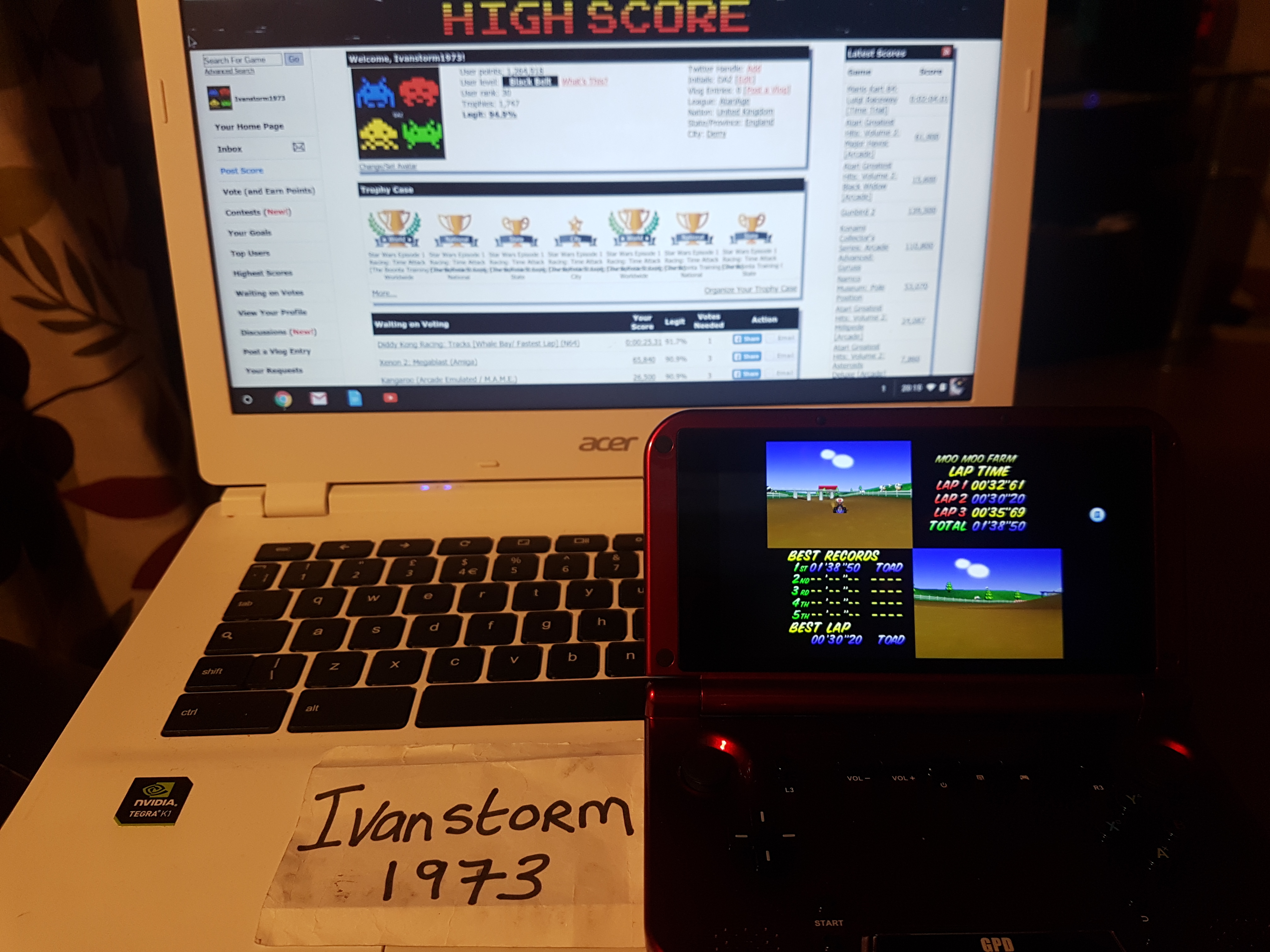 Played with an NTSC game on a NTSC N64 (HW or Emu). INFO WHEN POSTING YOUR SCORES: If you play Time Trial you MUST post it in Time Trail Best Lap or Time Trail Total Time If you play a GP, you post on one of the CC boards. Your GP points go to Total Points Cup and you'll have to select the appropriate cup and CC as a track (which you can find all the way down the tracks pull down) |