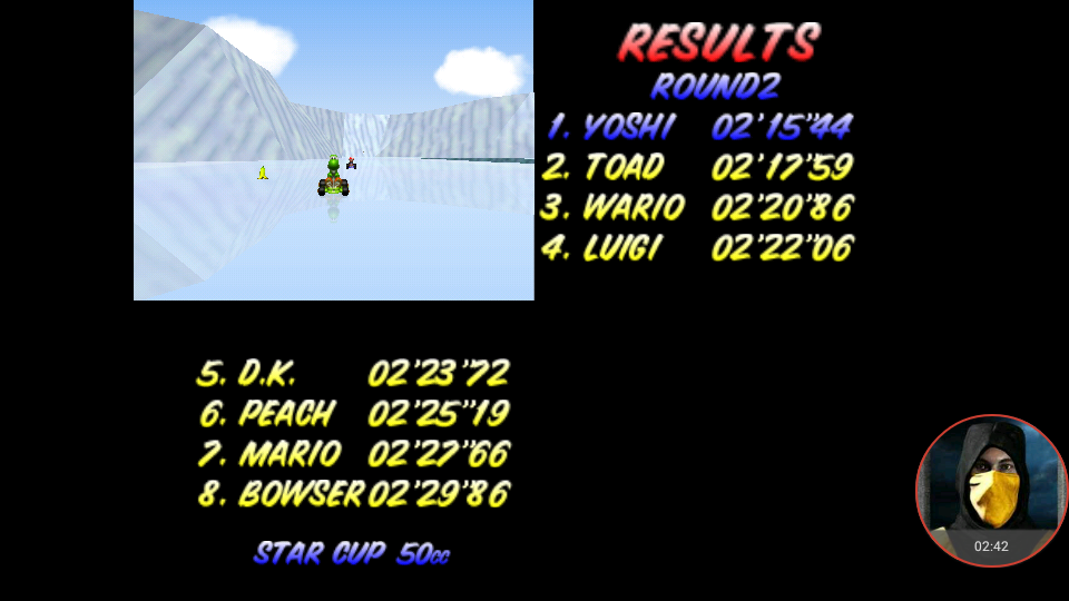 Played with an PAL game on a PAL N64 (HW or Emu) for PAL. Played with an NTSC game on a NTSC N64 (HW or Emu) for NTSC. INFO WHEN POSTING YOUR SCORES: If you play Time Trial you MUST post it in Time Trail Best Lap or Time Trail Total Time If you play a GP, you post on one of the CC boards. Your GP points go to Total Points Cup and you'll have to select the appropriate cup and CC as a track (which you can find all the way down the tracks pull down) |
