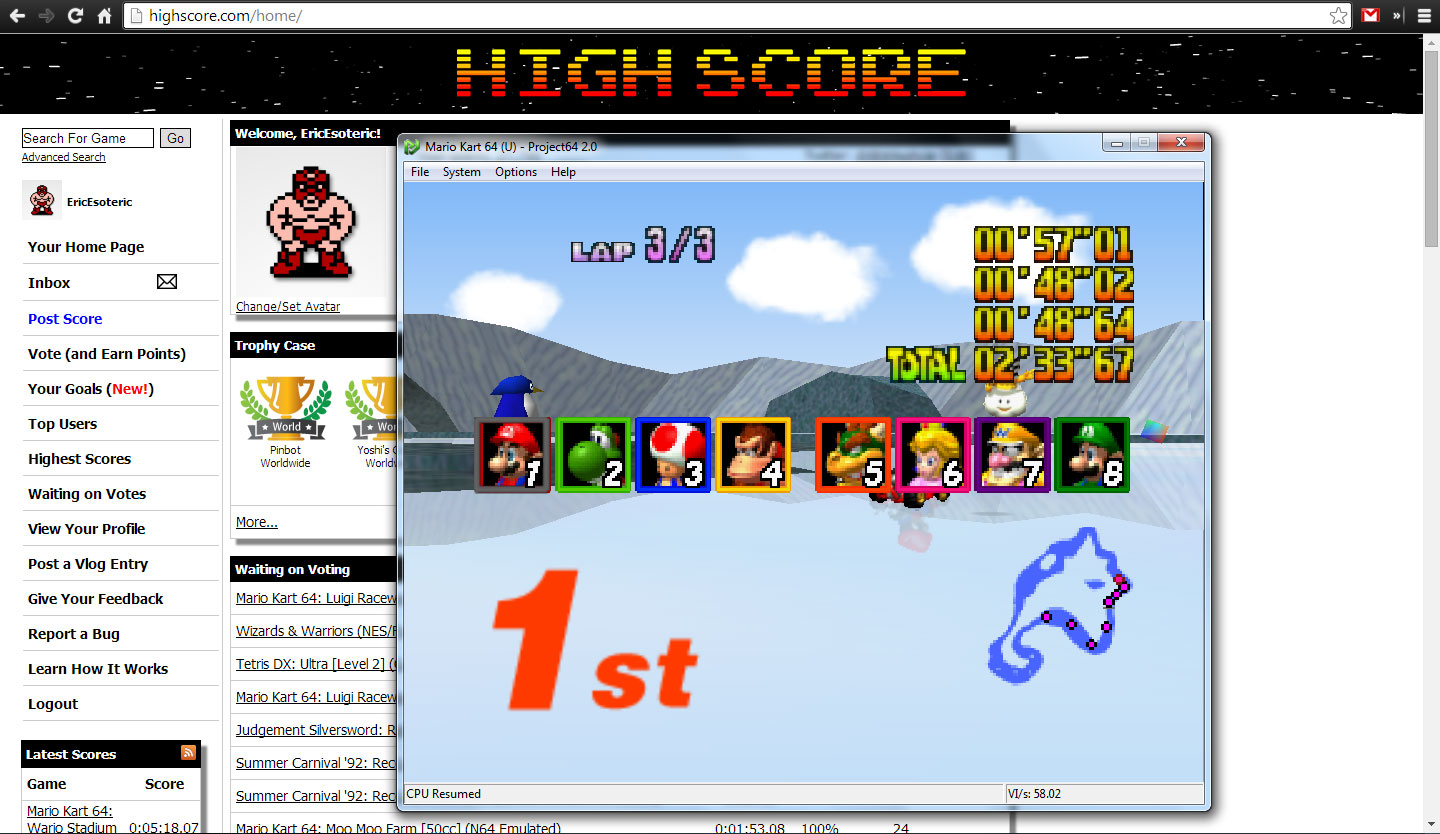 Played with an PAL game on a PAL N64 (HW or Emu) for PAL. Played with an NTSC game on a NTSC N64 (HW or Emu) for NTSC. INFO WHEN POSTING YOUR SCORES: If you play Time Trial you MUST post it in Time Trail Best Lap or Time Trail Total Time If you play a GP, you post on one of the CC boards. Your GP points go to Total Points Cup and you'll have to select the appropriate cup and CC as a track (which you can find all the way down the tracks pull down) |