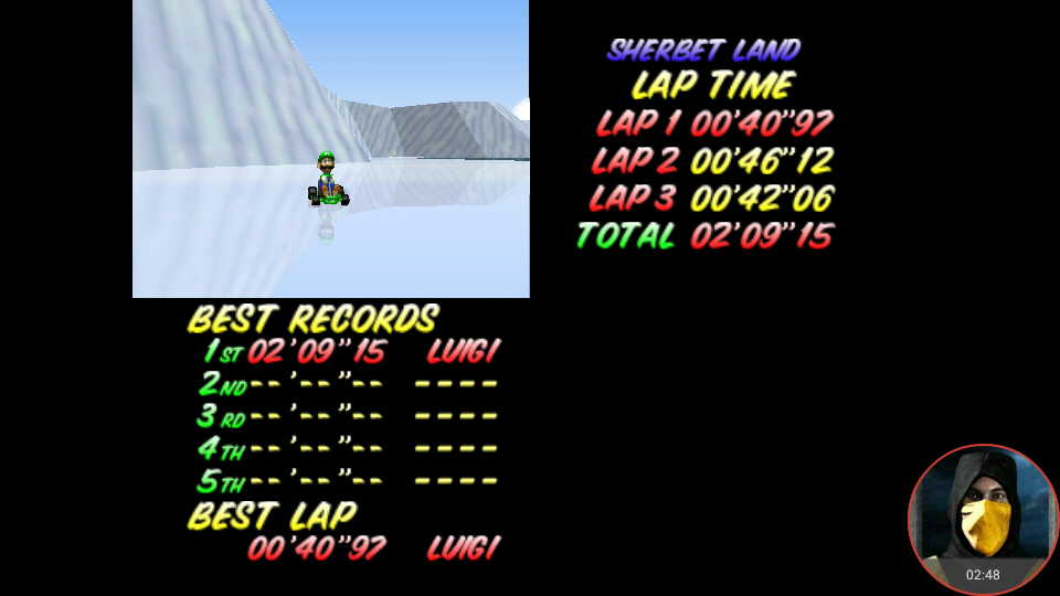 Played with an NTSC game on a NTSC N64 (HW or Emu). INFO WHEN POSTING YOUR SCORES: If you play Time Trial you MUST post it in Time Trail Best Lap or Time Trail Total Time If you play a GP, you post on one of the CC boards. Your GP points go to Total Points Cup and you'll have to select the appropriate cup and CC as a track (which you can find all the way down the tracks pull down) |