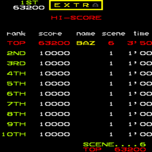 Play with default settings unless otherwise specified. If the ROM set is not mentioned, play the parent ROM. No use of trainers, cheats, saved game files, emulator save states or other emulator advantages. No use of code modifications that give the player an advantage over other players. 1 player only. No continues. In-game/internal autofire is only allowed if a game has it (enabled through hard or soft DIPs). External/MAME/cheat-based autofire is not allowed. It is discouraged and may lead to voters not accepting your score to - excessively point farm - use glitches or other game exploits You can use any emulator you want (Retropie, rain, neo geo, Coinops, Antstream, handhelds,...). If specific emulators or versions are restricted, it will be mentioned in the Specific rules. For Top 3 we encourage (but NOT mandatory) to provide: a) A full video with DIP Switches to be shown in the video (at the start or at the end of your performance). If DIP Switches are not available, Service Menu should be used instead (at the start of your performance). If no difficulty settings is available on your game, you still have to show either DIP switches or service mode showing this (if not mentioned in the specific rules). OR b) An INP file. Please state your MAME version in the comments. And add an URL where the voter can download your .inp. (We currently have no way to store those files on the server, but it is on the roadmap). For INPs: o We encourage to also show the DIPs during your video play. o Delete NVRAM before recording/viewing. Many arcade games that MAME emulates save some information (like high scores) in non-volatile ram (NVRAM), which by default MAME saves in the nvram subfolder. For some games (not all) the RNG is affected by NVRAM, so an .inp file recorded with non-empty nvram won't replay correctly on anyone else's system. o To record INP file, you require Wolfmame: You can download it here : https://github.com/mahlemiut/wolfmame/releases (or on MARP). o Record one run gameplay when using INP. |