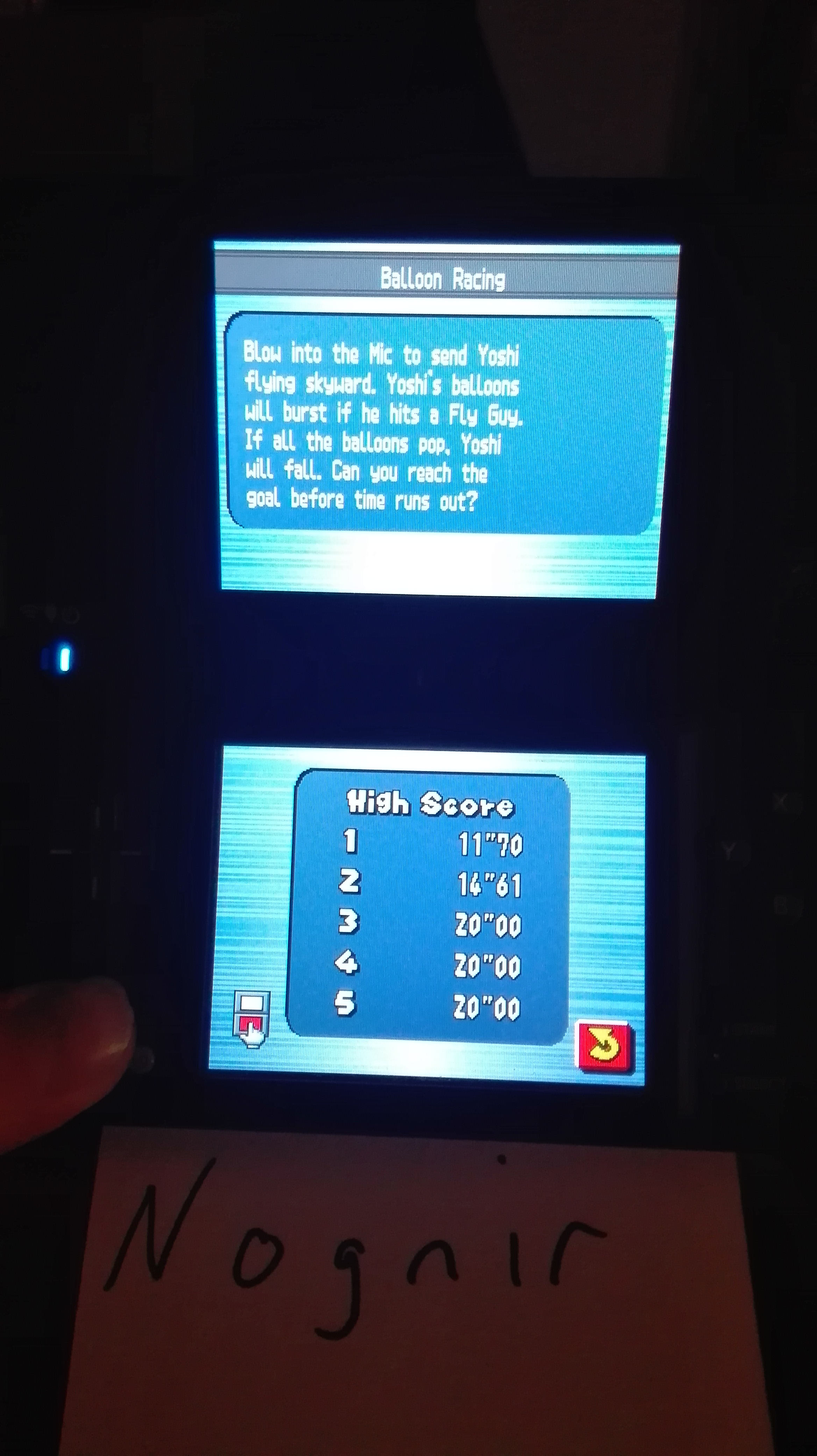 Game must be played on the actual hardware (Nintendo DS, DSi) or backwards compatible hardware (Nintendo 2DS, 3DS (XL)). Play with default settings unless otherwise specified. No code modifications that give the player an advantage over other players. 1 credit. No continues. 1 player mode only. No use of trainers, cheats, auto-fire (when not default present in-game) , game saves, or cheat codes. Can be overruled by the Specific Rules (see below). It is discouraged and may lead to voters not accepting your score to - excessively point farm - use glitches or other game exploits |