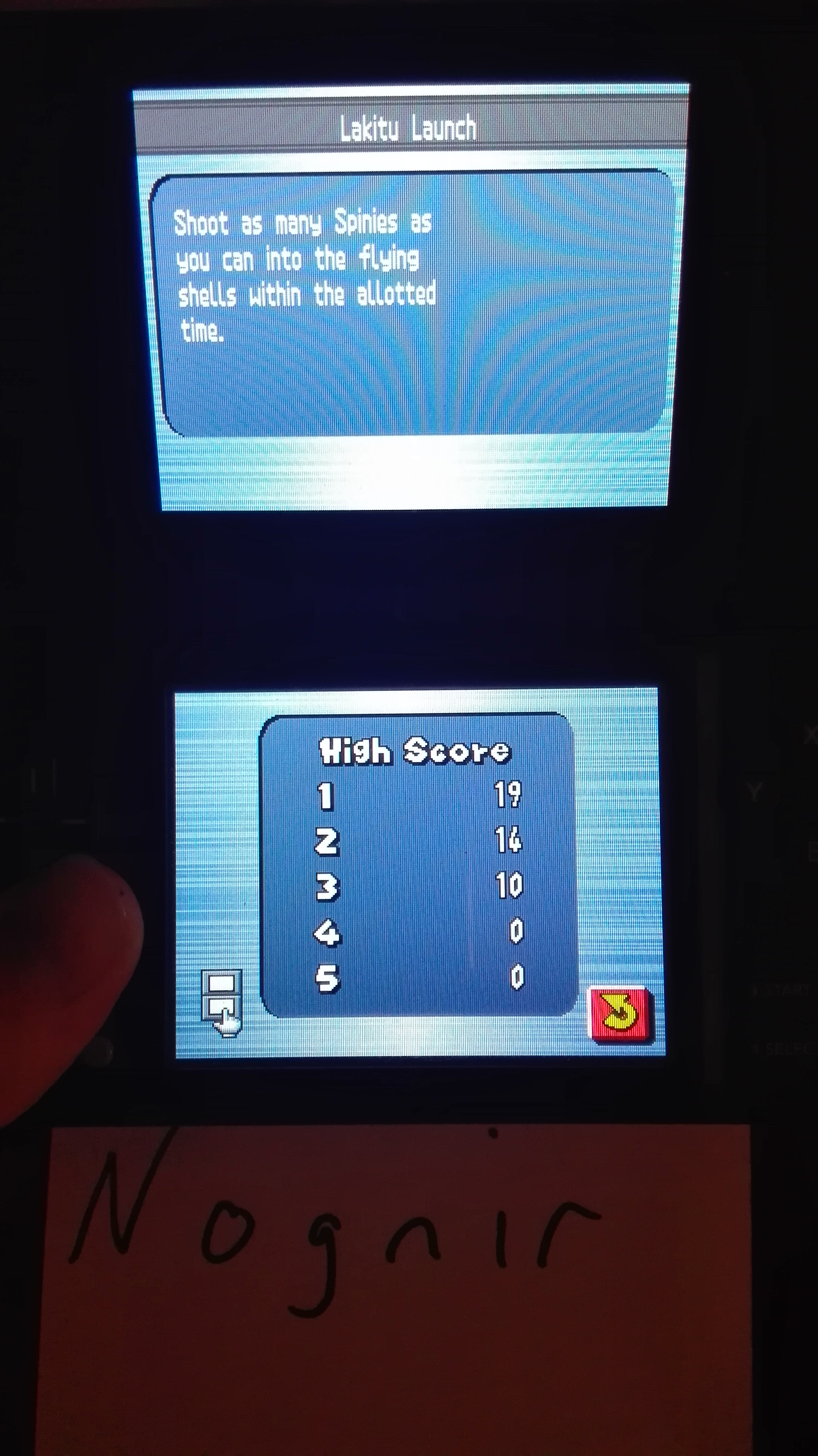 Game must be played on the actual hardware (Nintendo DS, DSi) or backwards compatible hardware (Nintendo 2DS, 3DS (XL)). Play with default settings unless otherwise specified. No code modifications that give the player an advantage over other players. 1 credit. No continues. 1 player mode only. No use of trainers, cheats, auto-fire (when not default present in-game) , game saves, or cheat codes. Can be overruled by the Specific Rules (see below). It is discouraged and may lead to voters not accepting your score to - excessively point farm - use glitches or other game exploits |
