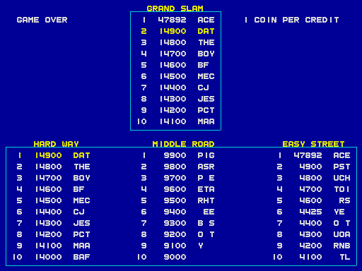 Play with default settings unless otherwise specified. If the ROM set is not mentioned, play the parent ROM. No use of trainers, cheats, saved game files, emulator save states or other emulator advantages. No use of code modifications that give the player an advantage over other players. 1 player only. No continues. In-game/internal autofire is only allowed if a game has it (enabled through hard or soft DIPs). External/MAME/cheat-based autofire is not allowed. It is discouraged and may lead to voters not accepting your score to - excessively point farm - use glitches or other game exploits You can use any emulator you want (Retropie, rain, neo geo, Coinops, Antstream, handhelds,...). If specific emulators or versions are restricted, it will be mentioned in the Specific rules. For Top 3 we encourage (but NOT mandatory) to provide: a) A full video with DIP Switches to be shown in the video (at the start or at the end of your performance). If DIP Switches are not available, Service Menu should be used instead (at the start of your performance). If no difficulty settings is available on your game, you still have to show either DIP switches or service mode showing this (if not mentioned in the specific rules). OR b) An INP file. Please state your MAME version in the comments. And add an URL where the voter can download your .inp. (We currently have no way to store those files on the server, but it is on the roadmap). For INPs: o We encourage to also show the DIPs during your video play. o Delete NVRAM before recording/viewing. Many arcade games that MAME emulates save some information (like high scores) in non-volatile ram (NVRAM), which by default MAME saves in the nvram subfolder. For some games (not all) the RNG is affected by NVRAM, so an .inp file recorded with non-empty nvram won't replay correctly on anyone else's system. o To record INP file, you require Wolfmame: You can download it here : https://github.com/mahlemiut/wolfmame/releases (or on MARP). o Record one run gameplay when using INP. |