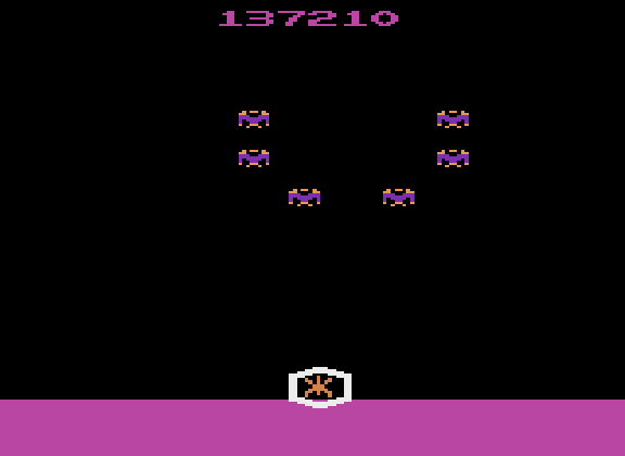 Only one game variation in this title. Game select switch has no effect. Left difficulty switch is player's choice, and can therefore be in any position at any time. A/Expert: No background sounds B/Novice: Background sounds Right difficulty switch setting has no effect in this title, and can therefore be in any position at any time. Rollover: 1,000,000 3.4.22 |