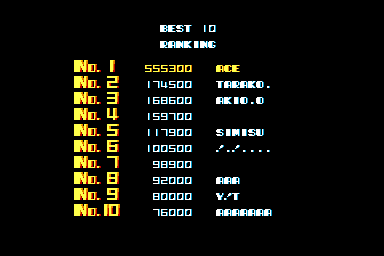 Play with default settings unless otherwise specified. If the ROM set is not mentioned, play the parent ROM. No use of trainers, cheats, saved game files, emulator save states or other emulator advantages. No use of code modifications that give the player an advantage over other players. 1 player only. No continues. In-game/internal autofire is only allowed if a game has it (enabled through hard or soft DIPs). External/MAME/cheat-based autofire is not allowed. It is discouraged and may lead to voters not accepting your score to - excessively point farm - use glitches or other game exploits You can use any emulator you want (Retropie, rain, neo geo, Coinops, Antstream, handhelds,...). If specific emulators or versions are restricted, it will be mentioned in the Specific rules. For Top 3 we encourage (but NOT mandatory) to provide: a) A full video with DIP Switches to be shown in the video (at the start or at the end of your performance). If DIP Switches are not available, Service Menu should be used instead (at the start of your performance). If no difficulty settings is available on your game, you still have to show either DIP switches or service mode showing this (if not mentioned in the specific rules). OR b) An INP file. Please state your MAME version in the comments. And add an URL where the voter can download your .inp. (We currently have no way to store those files on the server, but it is on the roadmap). For INPs: o We encourage to also show the DIPs during your video play. o Delete NVRAM before recording/viewing. Many arcade games that MAME emulates save some information (like high scores) in non-volatile ram (NVRAM), which by default MAME saves in the nvram subfolder. For some games (not all) the RNG is affected by NVRAM, so an .inp file recorded with non-empty nvram won't replay correctly on anyone else's system. o To record INP file, you require Wolfmame: You can download it here : https://github.com/mahlemiut/wolfmame/releases (or on MARP). o Record one run gameplay when using INP. |
