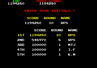 Play with default settings unless otherwise specified. If the ROM set is not mentioned, play the parent ROM. No use of trainers, cheats, saved game files, emulator save states or other emulator advantages. No use of code modifications that give the player an advantage over other players. 1 player only. No continues. In-game/internal autofire is only allowed if a game has it (enabled through hard or soft DIPs). External/MAME/cheat-based autofire is not allowed. It is discouraged and may lead to voters not accepting your score to - excessively point farm - use glitches or other game exploits You can use any emulator you want (Retropie, rain, neo geo, Coinops, Antstream, handhelds,...). If specific emulators or versions are restricted, it will be mentioned in the Specific rules. For Top 3 we encourage (but NOT mandatory) to provide: a) A full video with DIP Switches to be shown in the video (at the start or at the end of your performance). If DIP Switches are not available, Service Menu should be used instead (at the start of your performance). If no difficulty settings is available on your game, you still have to show either DIP switches or service mode showing this (if not mentioned in the specific rules). OR b) An INP file. Please state your MAME version in the comments. And add an URL where the voter can download your .inp. (We currently have no way to store those files on the server, but it is on the roadmap). For INPs: o We encourage to also show the DIPs during your video play. o Delete NVRAM before recording/viewing. Many arcade games that MAME emulates save some information (like high scores) in non-volatile ram (NVRAM), which by default MAME saves in the nvram subfolder. For some games (not all) the RNG is affected by NVRAM, so an .inp file recorded with non-empty nvram won't replay correctly on anyone else's system. o To record INP file, you require Wolfmame: You can download it here : https://github.com/mahlemiut/wolfmame/releases (or on MARP). o Record one run gameplay when using INP. |
