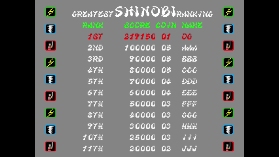 Play with default settings unless otherwise specified. If the ROM set is not mentioned, play the parent ROM. No use of trainers, cheats, saved game files, emulator save states or other emulator advantages. No use of code modifications that give the player an advantage over other players. 1 player only. No continues. In-game/internal autofire is only allowed if a game has it (enabled through hard or soft DIPs). External/MAME/cheat-based autofire is not allowed. It is discouraged and may lead to voters not accepting your score to - excessively point farm - use glitches or other game exploits You can use any emulator you want (Retropie, rain, neo geo, Coinops, Antstream, handhelds,...). If specific emulators or versions are restricted, it will be mentioned in the Specific rules. For Top 3 we encourage (but NOT mandatory) to provide: a) A full video with DIP Switches to be shown in the video (at the start or at the end of your performance). If DIP Switches are not available, Service Menu should be used instead (at the start of your performance). If no difficulty settings is available on your game, you still have to show either DIP switches or service mode showing this (if not mentioned in the specific rules). OR b) An INP file. Please state your MAME version in the comments. And add an URL where the voter can download your .inp. (We currently have no way to store those files on the server, but it is on the roadmap). For INPs: o We encourage to also show the DIPs during your video play. o Delete NVRAM before recording/viewing. Many arcade games that MAME emulates save some information (like high scores) in non-volatile ram (NVRAM), which by default MAME saves in the nvram subfolder. For some games (not all) the RNG is affected by NVRAM, so an .inp file recorded with non-empty nvram won't replay correctly on anyone else's system. o To record INP file, you require Wolfmame: You can download it here : https://github.com/mahlemiut/wolfmame/releases (or on MARP). o Record one run gameplay when using INP. |