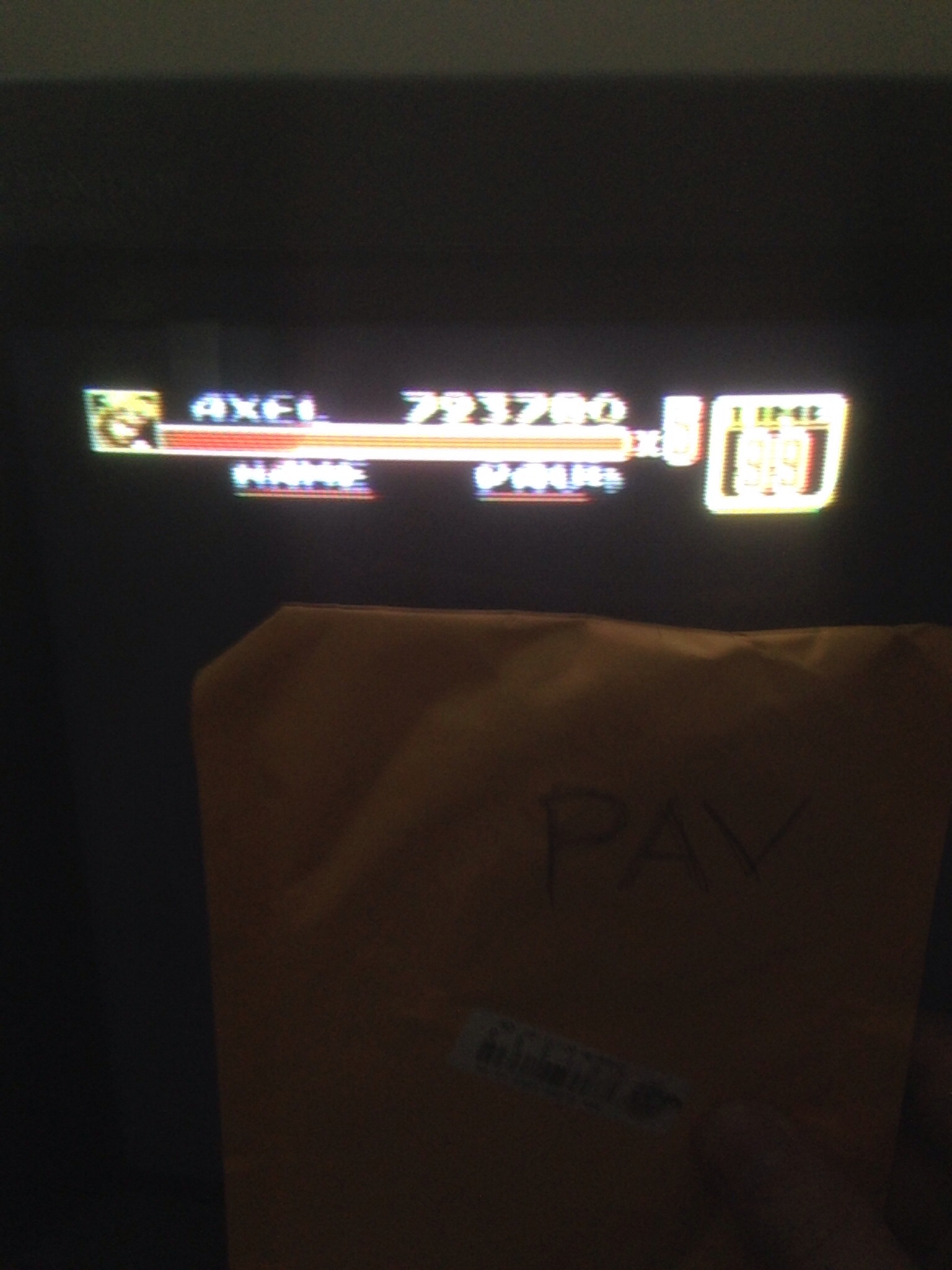Play the game in 1 player mode with default settings. Using the multiple score technique by spamming the attack button during Max's jump-throw moves. The 'atomic drop' when grabbing enemies from the back allows for more presses and bigger score. |
