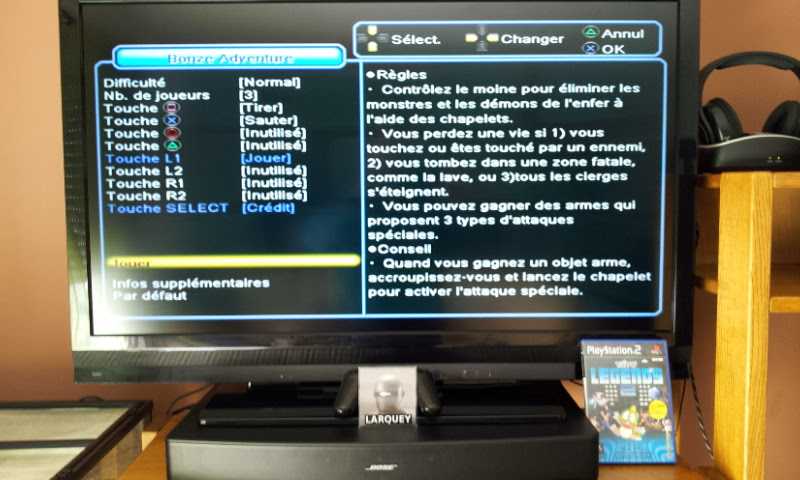 Play the game in 1 player mode with default settings *** Balloon Bomber *** No difficulty setting on , so : - Easy = 5Lives - Normal = 4Lives - Hard = 3Lives (Default) *** Cleopatra Fortune *** Always select Easy (Level 1) mode (no bonus point), in the in-game difficulty selection mode. Difficulty is chosen in the compilation menu ! *** Lunar Rescue *** No difficulty setting on , so : Easy = 6 lives Normal = 5 lives Hard = 3 lives *** Bust-A-Move Again *** Select Player VS Computer & Normal difficulty *** Qix *** As there is no global difficulty settings for the whole game, difficulty must be set in the stage difficulty menu instead *** Space Invaders '95 *** As there is no global difficulty settings for the whole game, difficulty must be set in the stage difficulty menu instead *** The Fairyland Story *** Easy = 5 Lives Normal = 3 Lives Hard = No hard setting *** Wild Western *** Easy = 6 Lives Normal = 3 Lives Hard = No hard setting |