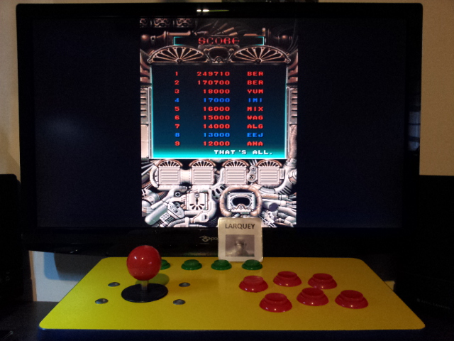 Play with default settings unless otherwise specified. If the ROM set is not mentioned, play the parent ROM. No use of trainers, cheats, saved game files, emulator save states or other emulator advantages. No use of code modifications that give the player an advantage over other players. 1 player only. No continues. In-game/internal autofire is only allowed if a game has it (enabled through hard or soft DIPs). External/MAME/cheat-based autofire is not allowed. It is discouraged and may lead to voters not accepting your score to - excessively point farm - use glitches or other game exploits You can use any emulator you want (Retropie, rain, neo geo, Coinops, Antstream, handhelds,...). If specific emulators or versions are restricted, it will be mentioned in the Specific rules. For Top 3 we encourage (but NOT mandatory) to provide: a) A full video with DIP Switches to be shown in the video (at the start or at the end of your performance). If DIP Switches are not available, Service Menu should be used instead (at the start of your performance). If no difficulty settings is available on your game, you still have to show either DIP switches or service mode showing this (if not mentioned in the specific rules). OR b) An INP file. Please state your MAME version in the comments. And add an URL where the voter can download your .inp. (We currently have no way to store those files on the server, but it is on the roadmap). For INPs: o We encourage to also show the DIPs during your video play. o Delete NVRAM before recording/viewing. Many arcade games that MAME emulates save some information (like high scores) in non-volatile ram (NVRAM), which by default MAME saves in the nvram subfolder. For some games (not all) the RNG is affected by NVRAM, so an .inp file recorded with non-empty nvram won't replay correctly on anyone else's system. o To record INP file, you require Wolfmame: You can download it here : https://github.com/mahlemiut/wolfmame/releases (or on MARP). o Record one run gameplay when using INP. |