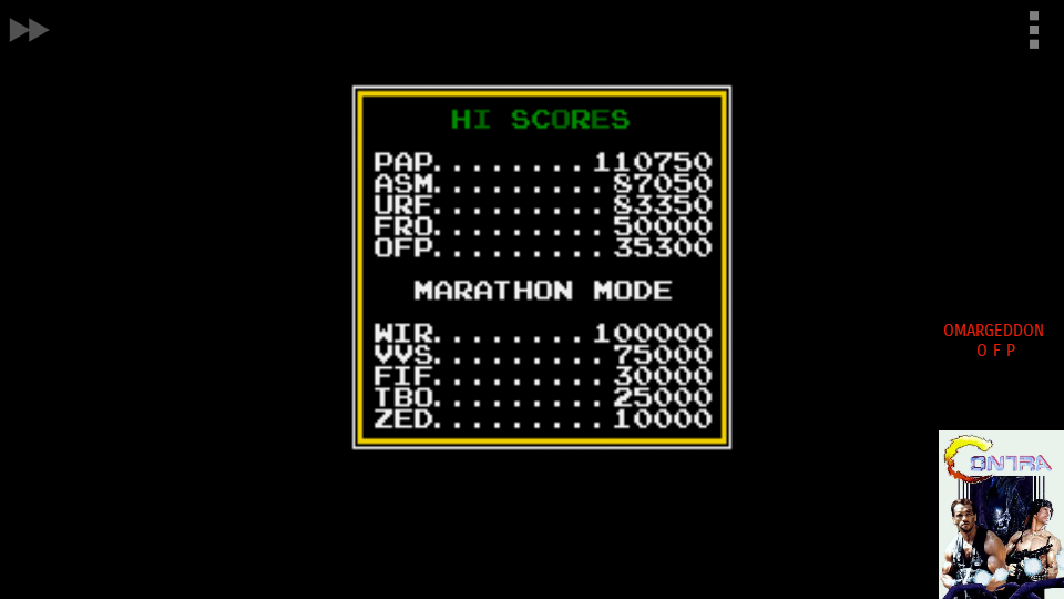 Play with default settings unless otherwise specified. No use of trainers, cheats, saved game files, auto-fire (when not default present in-game), emulator save states, or other emulator advantages. ATGames, Megadrive Mini, all FPGA platforms... are considered as emulation. No use of code modifications that give the player an advantage over other players. 1 player only. No continues. It is discouraged and may lead to voters not accepting your score to - excessively point farm - use glitches or other game exploits |